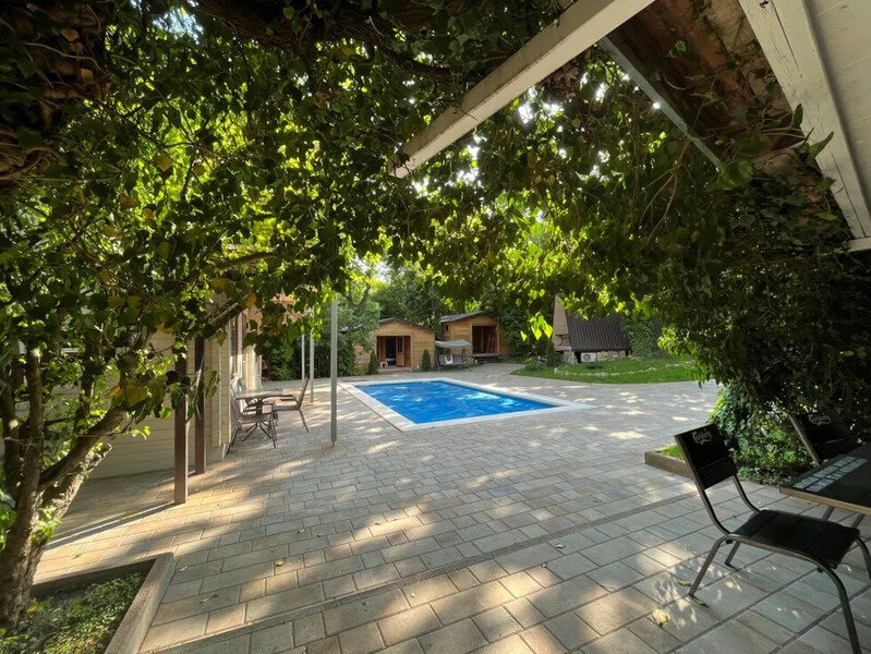 Отдельная от всех зона с открытым бассейном и шезлонгами, двумя большими беседками с мангалами и холодильником, душевыми и санузлом. В зоне помещается до 28 человек.