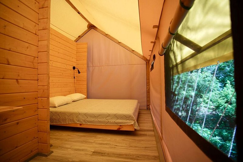 Гостям предлагаются комфортабельные номера для отдыха после активного времяпрепровождения на природе. В номерах удобная мебель и телевизоры. А желающие уединиться могут остановиться в уютных домах с кухней или же попробовать глэмпинг.