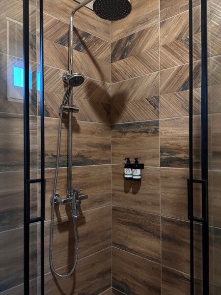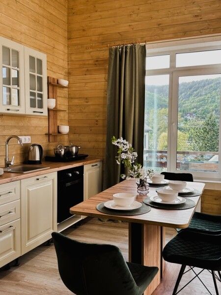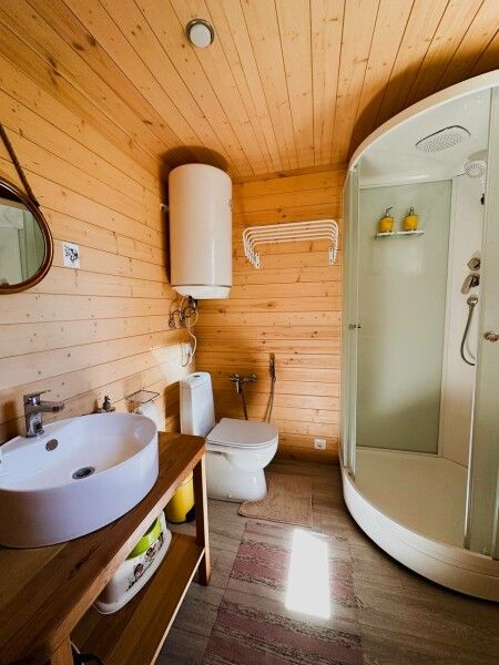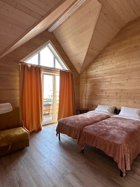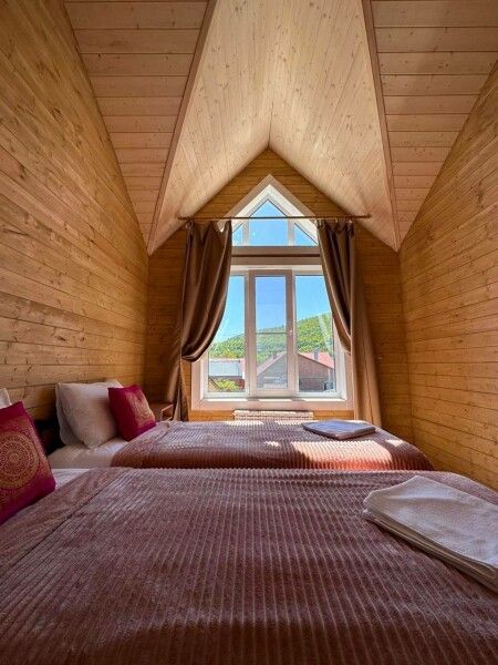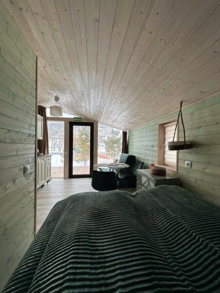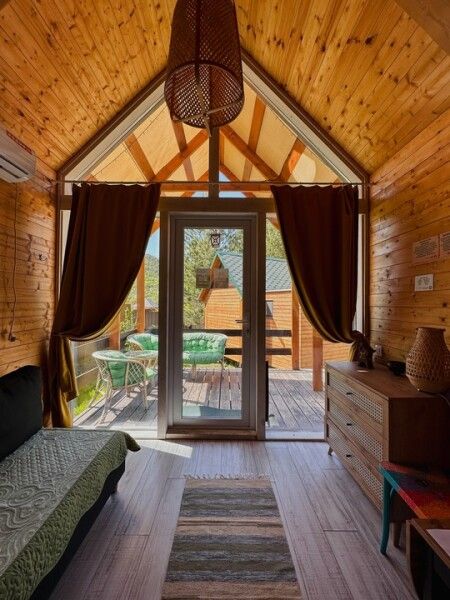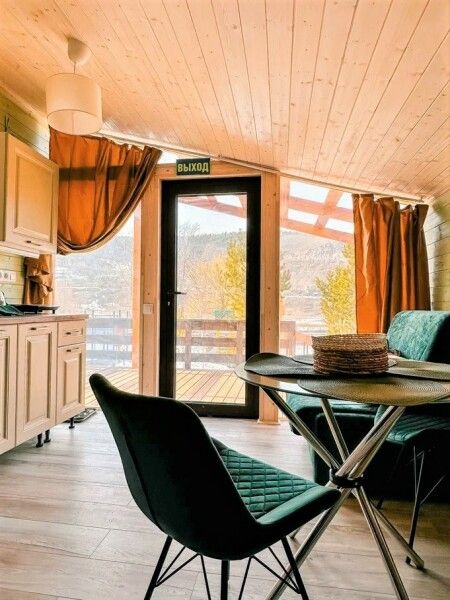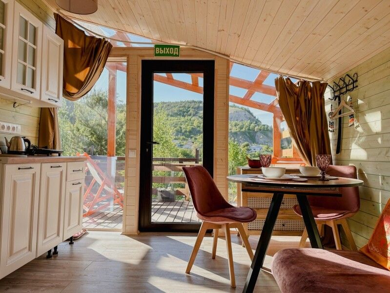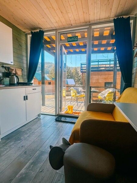 В домике: панорамные окна, вид на горы, панорамная терраса; две односпальные кровати (с возможностью трансформации в одну двуспальную кровать); раскладное кресло-кровать; кондиционер; санузел и душ, водонагреватель; шампунь, кондиционер для волос и гель для душа.
