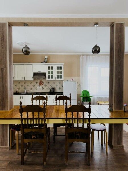 Апартаменты «Резиденция Хозяйки Жигулей» расположены на втором этаже административного здания, имеют отдельный вход и состоят из трех раздельных комнат, общей кухни-гостиной с двумя санузлами, балкона и террасы. На территории оборудованы детские площадки с качелями. Вид на горы. Подойдет для компании друзей или большой семьи.