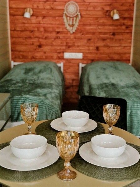 Оборудованная кухня: холодильник, плита, чайник, посуда для сервировки и приготовления пищи; постельное белье, полотенца; ортопедические матрасы, дизайнерские детали интерьера, создающие уют.