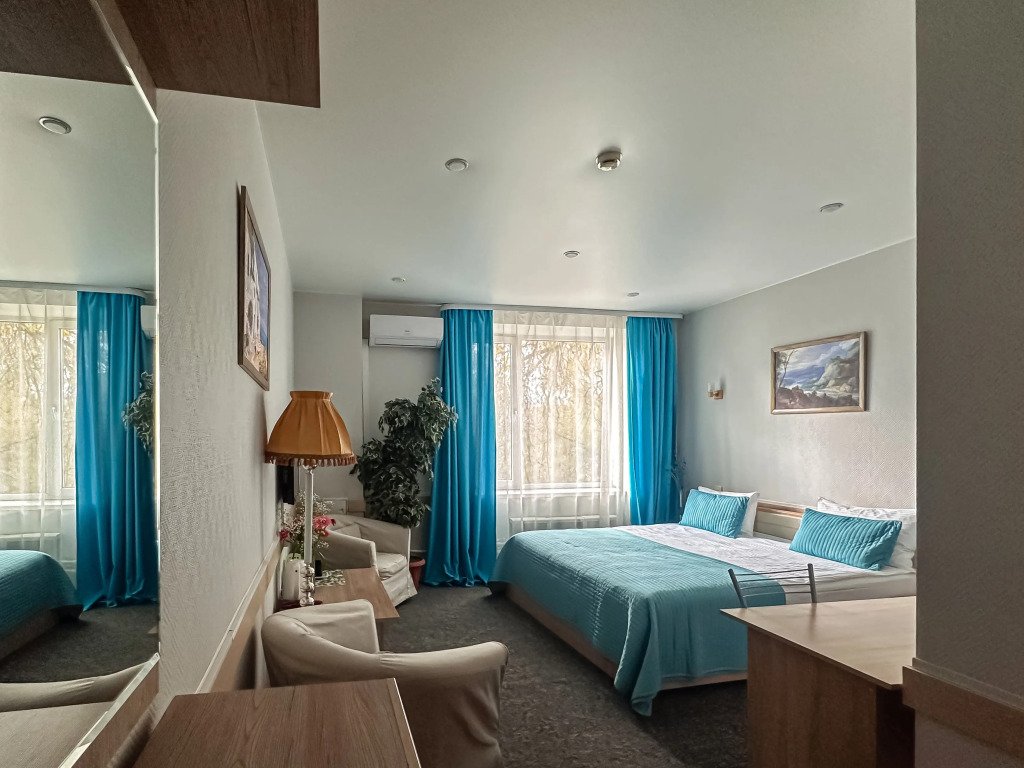 23 номера различных категорий оборудованы необходимым для отдыха во время рабочей командировки или семейных выходных.