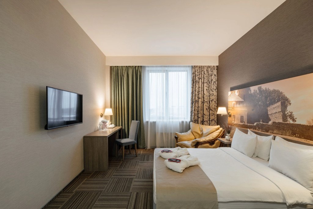 Стильные номера отеля RigaLand обставлены удобной мебелью и украшены видами старой Риги. Все номера оснащены сейфом и мини-баром. Вечером можно посмотреть телепередачи или связаться с родными и близкими при помощи Wi-Fi.
