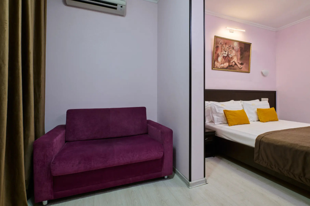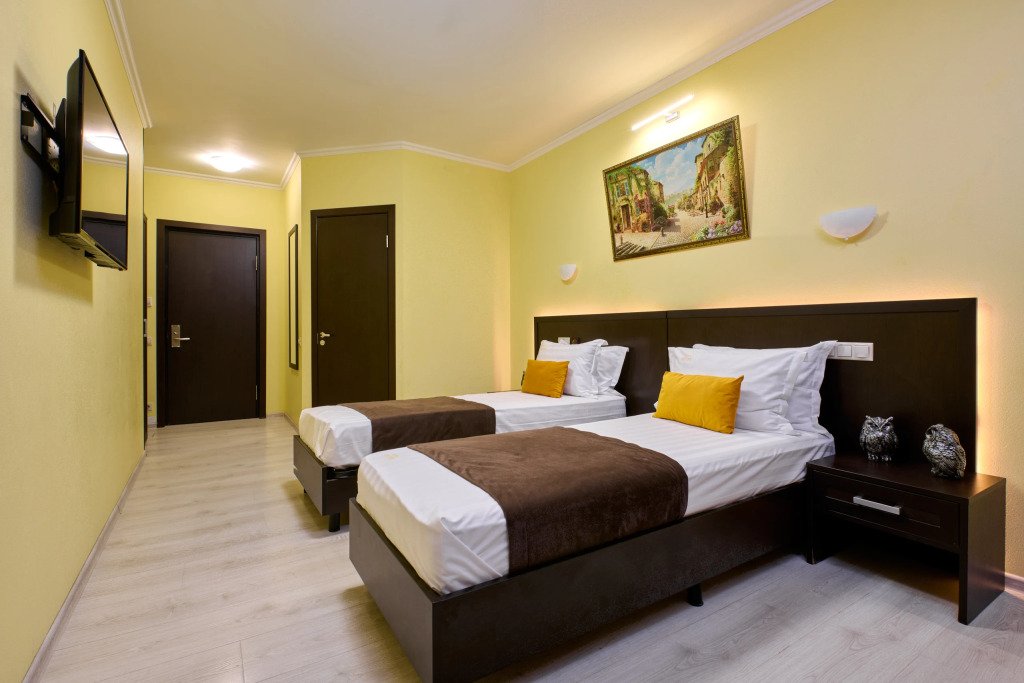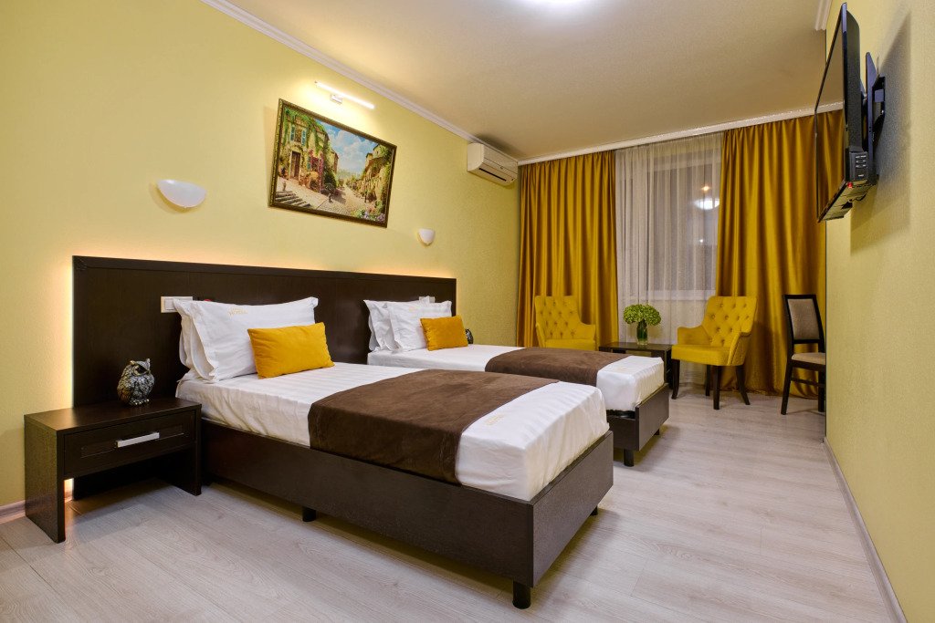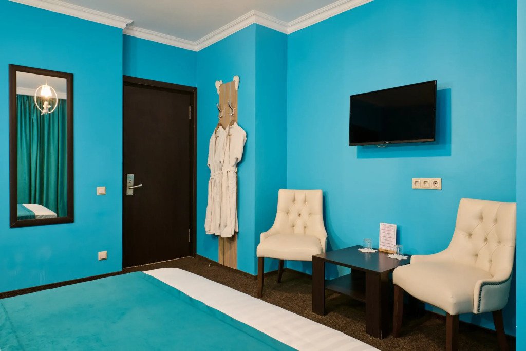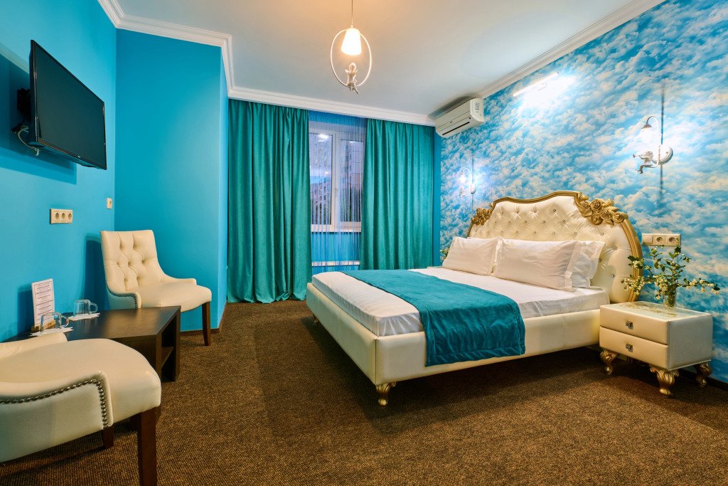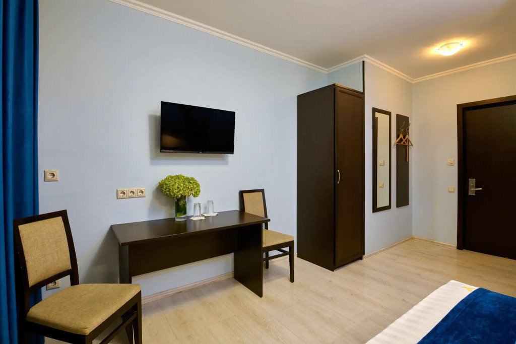 Номер уютно обставлен и оснащён необходимым, чтобы отдохнуть после долгого и насыщенного дня. Имеются телевизор и мини-бар. Оснащение зависит от выбранной категории номера.