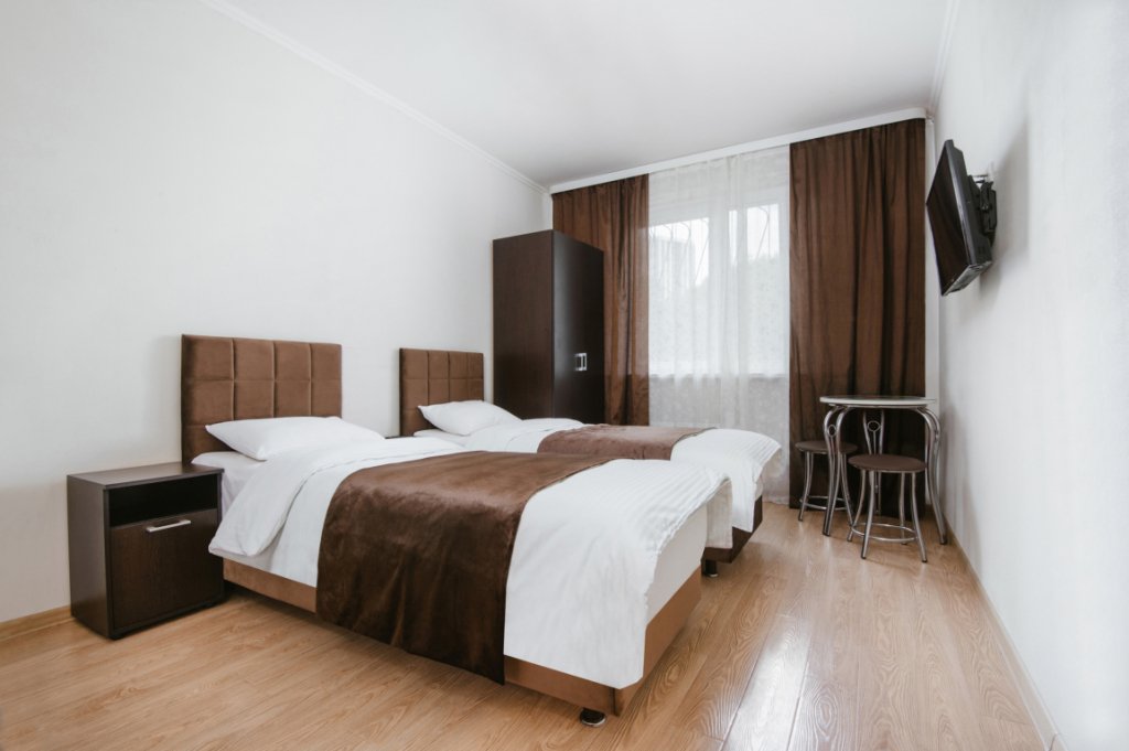 К услугам гостей номера с двуспальными либо двумя односпальными кроватями. На общей кухне можно приготовить еду, есть стиральная машина, гладильный стол и утюг. В стоимость проживания входят одноразовые тапочки, халаты и полотенца, бесплатный Wi-Fi, кабельное ТВ.