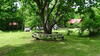 Возле домика туалет, площадка для пикника (стол, лавочки, мангал)