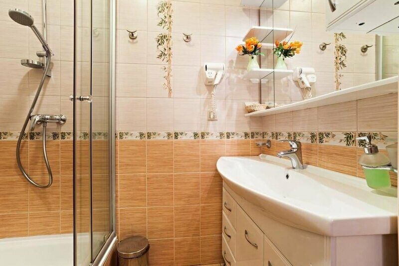 Путешествие с паройОтличная гостиницаМы жили в номере без собственной ванной комнаты, так как останавливались в этой гостинице всего на одну ночь. Общая душевая довольно большого размера, чистая, удобная. Есть два туалета. Имеется общая кухня с необходимой посудой, можно самим что-то приготовить.