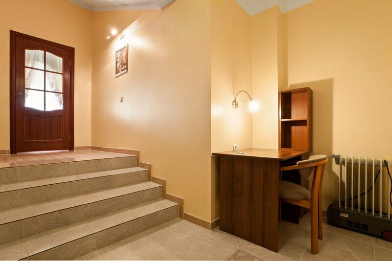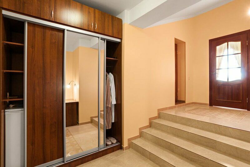 К тому же, в этом номере есть настоящая просторная прихожая, из которой в спальню ведут ступеньки. Это очень необычно и приятно. По сути дела, этот номер является небольшой квартирой (только без кухни): ты дышишь там полной грудью.