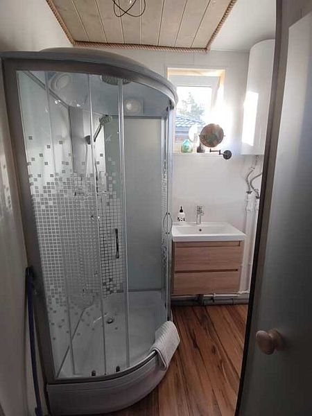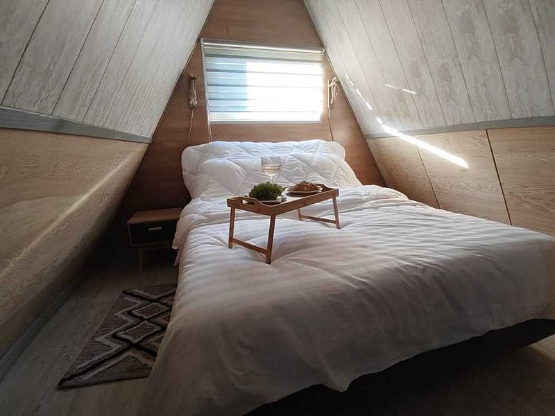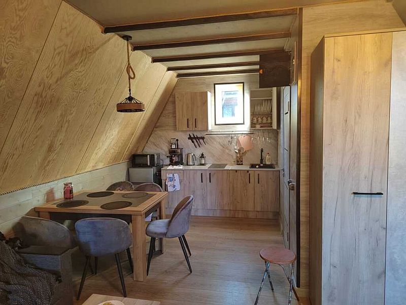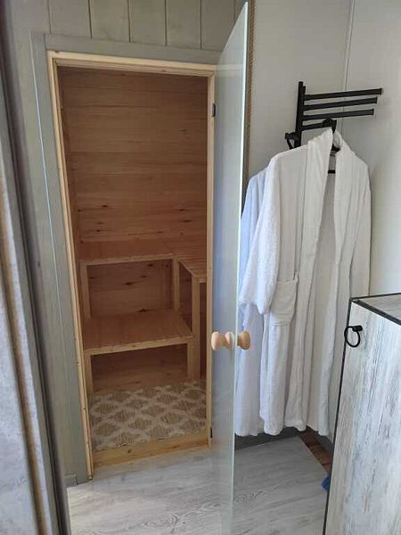 1 этаж - раскладывающийся диван на двух человек. 2 этаж - двухспальная кровать (160 см), кресло-кровать (150 см), диванчик (150 см). кухня - гостиная полностью оборудована для приготовления пищи и отдыха. Есть сауна и душевая комната.