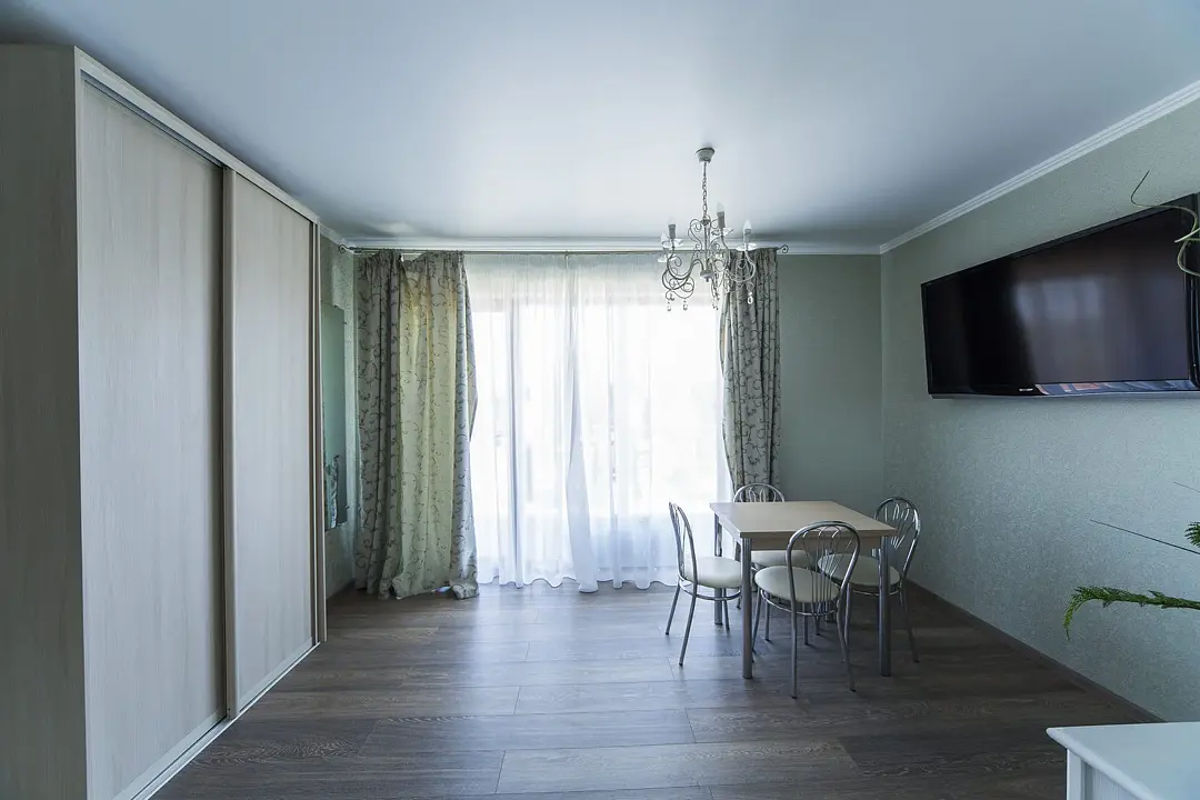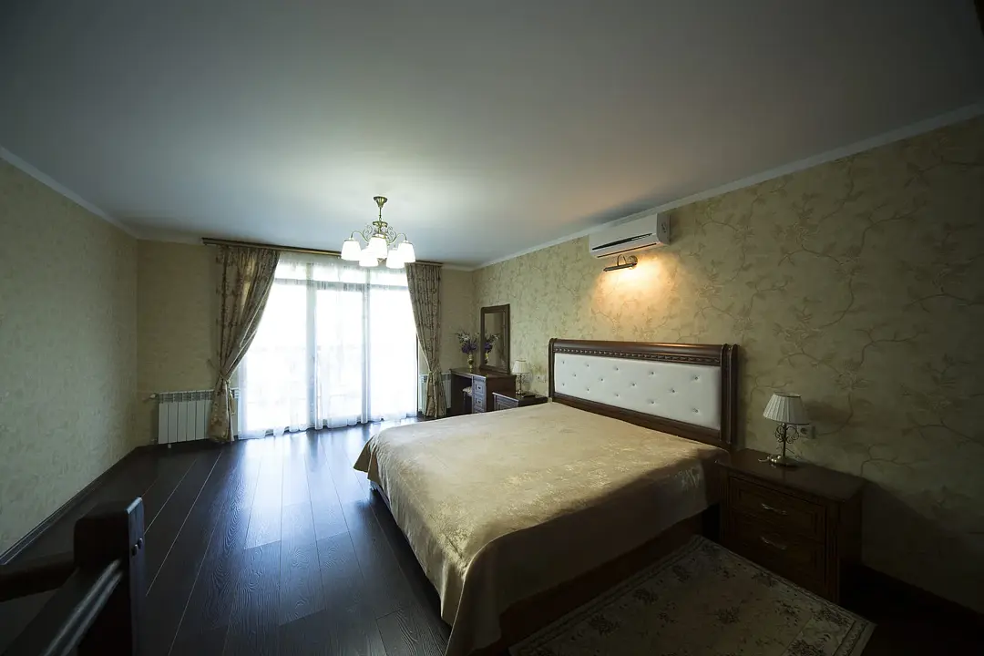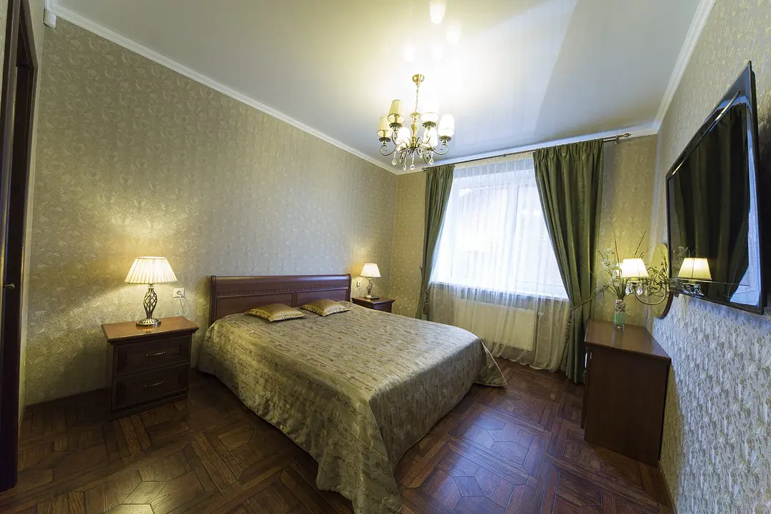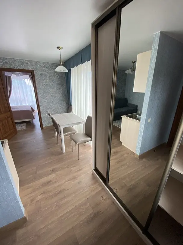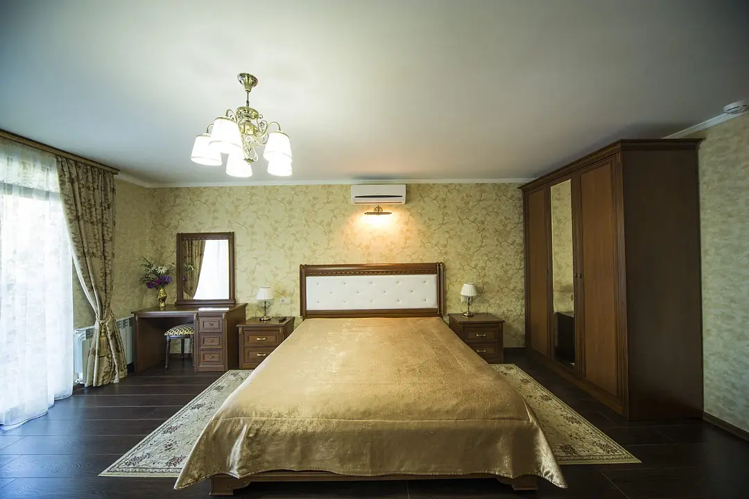Для вашего комфортного проживания, в номере есть прихожая с зеркальным шкафом для верхней одежды, гардеробная со всем необходимым, спальня встретит вас шикарной двуспальной, поистине королевской кроватью с балдахином, а ванная — джакузи с видом на реку. Имеется обеденная зона с полностью оборудованной кухней.