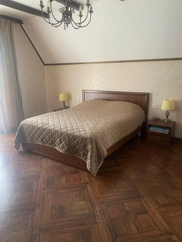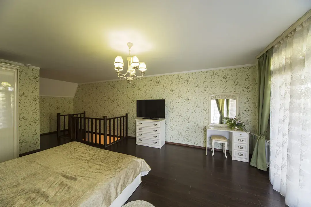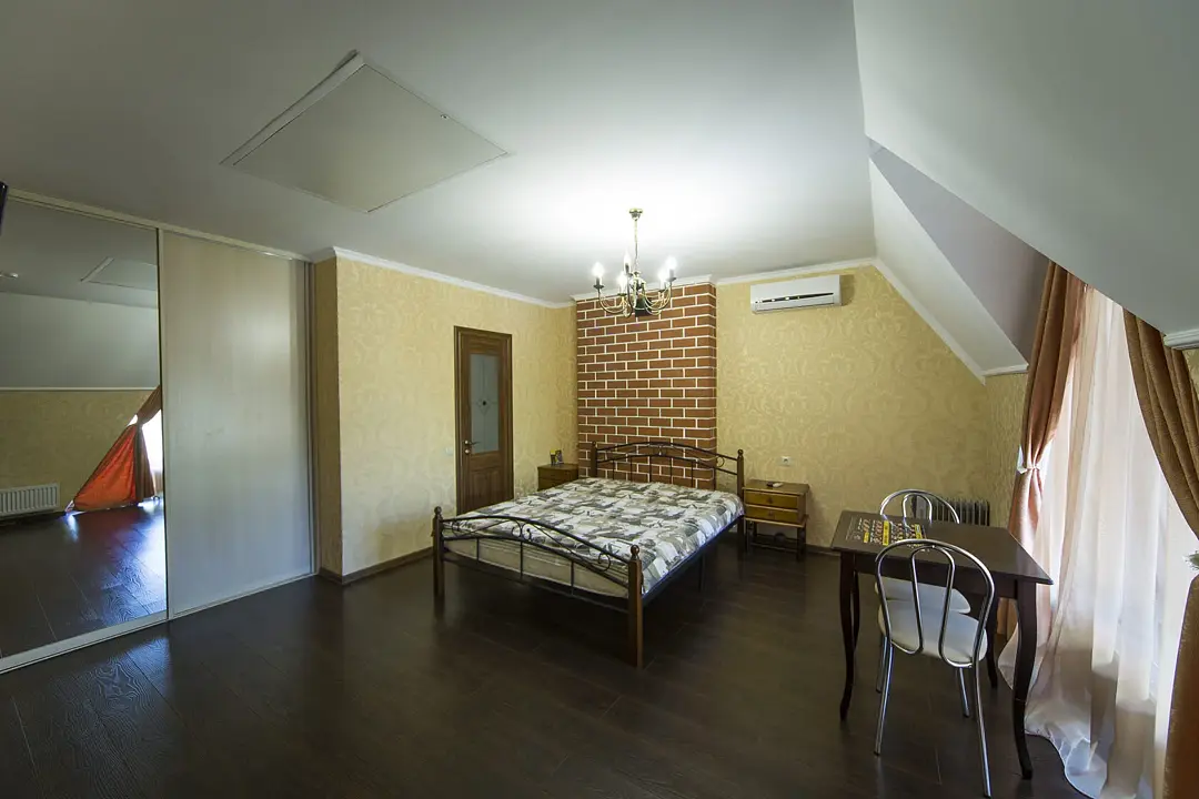 На втором этаже: просторная комната отдыха, стол на 15 человек, барная стойка с четырьмя стульями, балкон. А также: Телевизор, акустическая система, кухонный гарнитур, холодильник, микроволновка, чайник, столовая посуда на 15 человек. Сауна Энгельс-Саратов. Баня Энгельс-Саратов