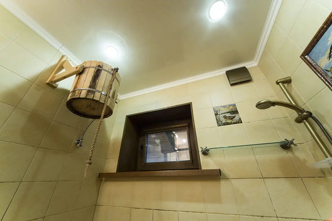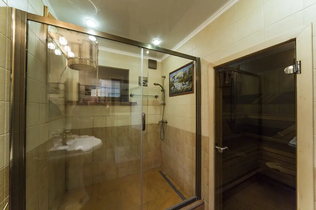 На первом этаже: русская Баня, восточный хаммам, душ, туалет, бассейн.