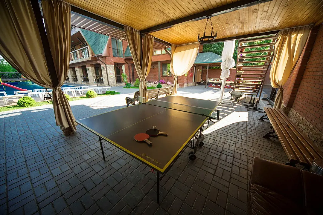 В стоимость входного билета включено: парковка, четыре бассейна, мангалы, шезлонги, беседка/стол на террасе, детская площадка, батут, настольный теннис.