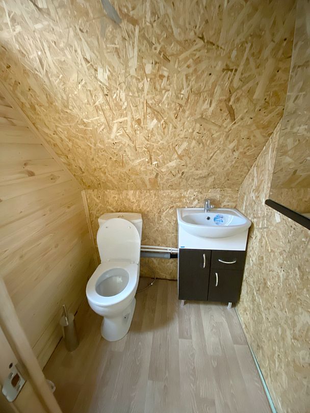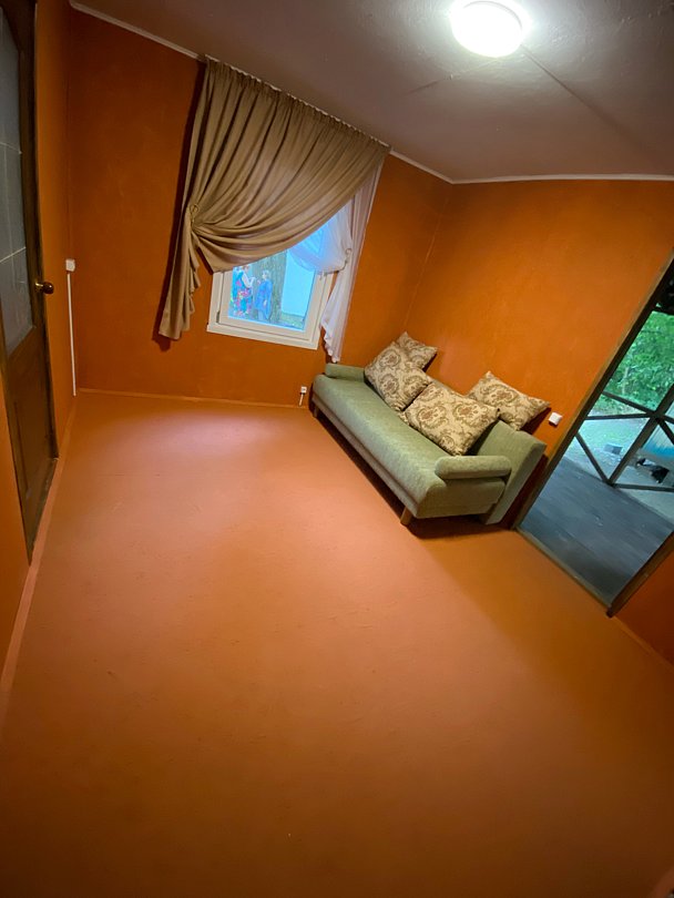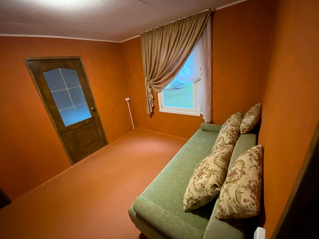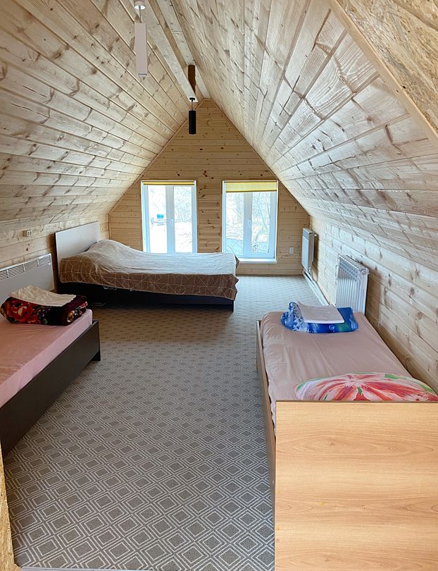 - 2 этаж: комната (двухспальная и две односпальные) кровати, туалет.