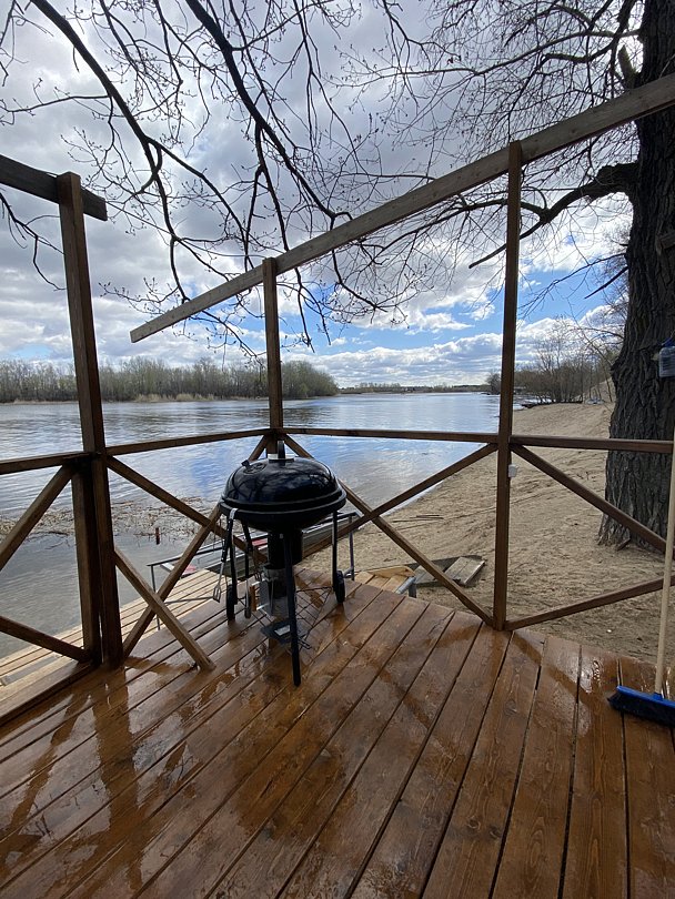 Инфраструктура: зона отдыха, душДом на берегу с баней и открытой верандой. Живописный вид на реку