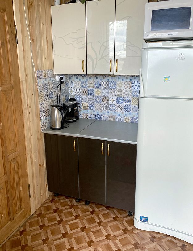 Также есть холодильник, микроволновка, термопот, индукционная плита и сервировочная посуда.