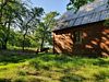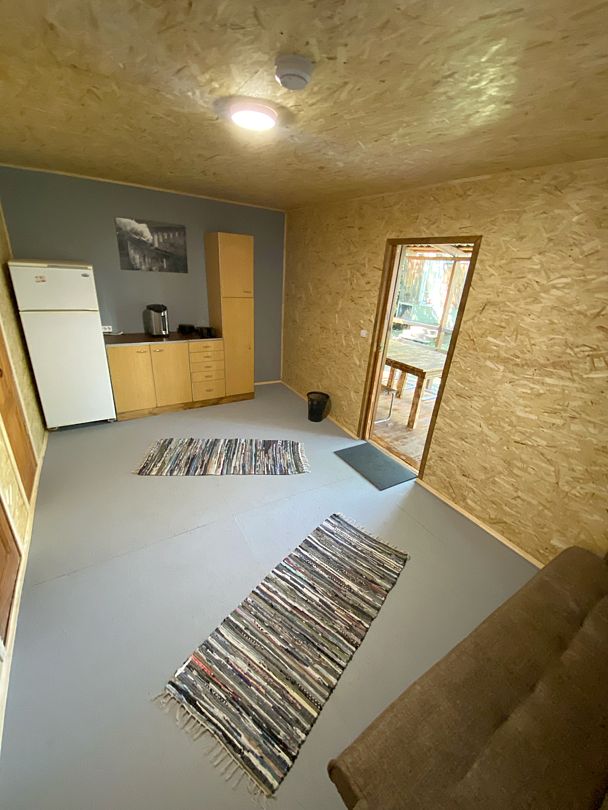 Дом с баней на берегу. Вместимость 6 человек. В доме имеется открытая веранда с видом на реку, а также удобства и душевая кабина с горячей водой. Дом оснащен котлом, поэтому в доме тепло.