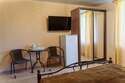 Двуспальная кровать, кресло-кровать, телевизор, холодильник, кондиционер, шкаф, санузел с душевой кабиной.