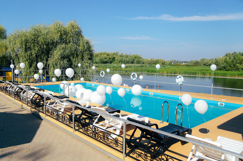 На территории базы вы найдёте открытый бассейн, баню с просторной верандой и мангальной зоной вместимостью до 10 гостей, закрытую кондиционированную беседку с зоной барбекю и кухней, 4 открытых беседки вдоль набережной, спортивную площадку с сеткой, банкетный зал, шале, теннисный корт и многое другое!
