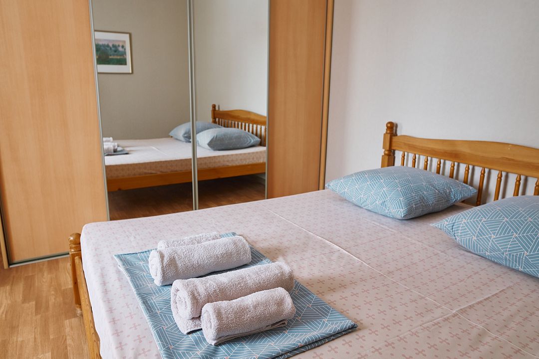 2-спальная кровать, кресло-кровать, телевизор, холодильник, кондиционер, шкаф, санузел с душевой кабиной.