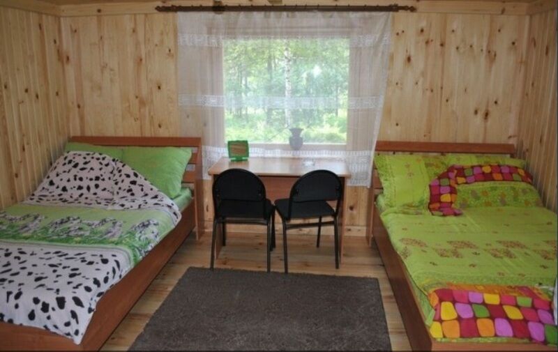 Три уютных 6-ти местных деревянных домика для круглогодичного отдыха. Площадь домика около 16 кв. м, каждых оборудован тремя 2-х спальными кроватями, столом и двумя стульями.
