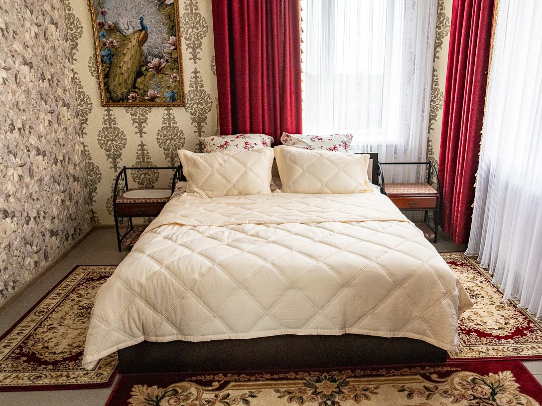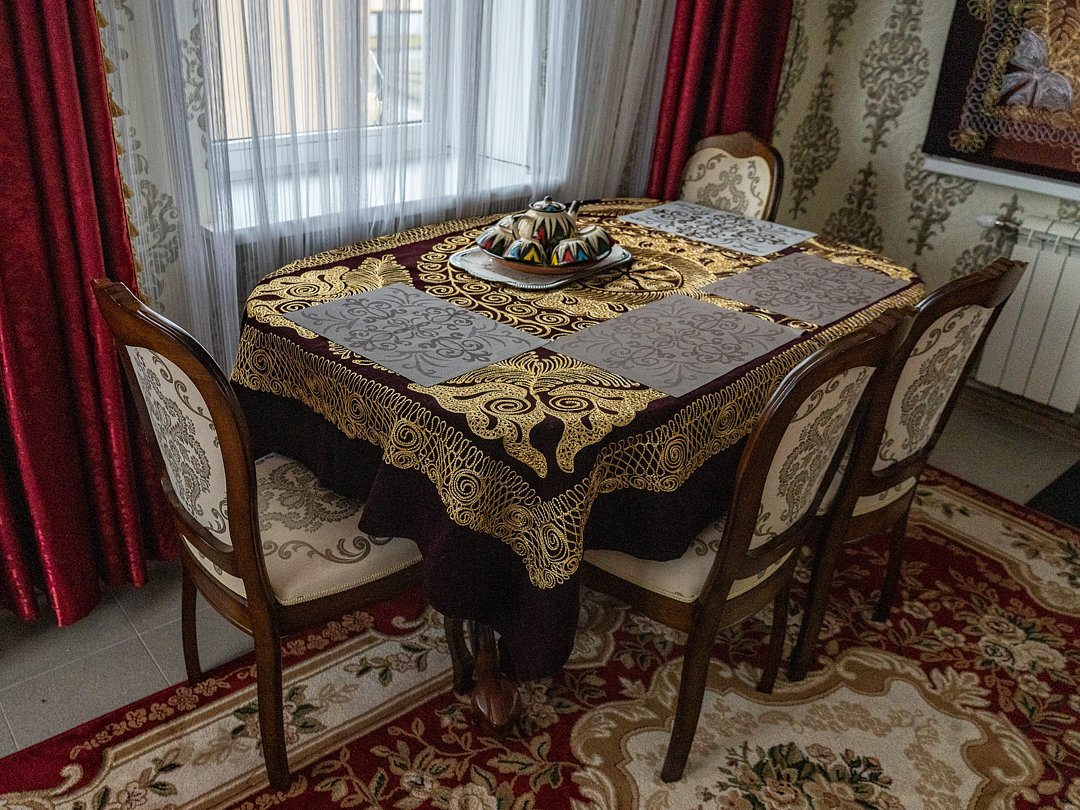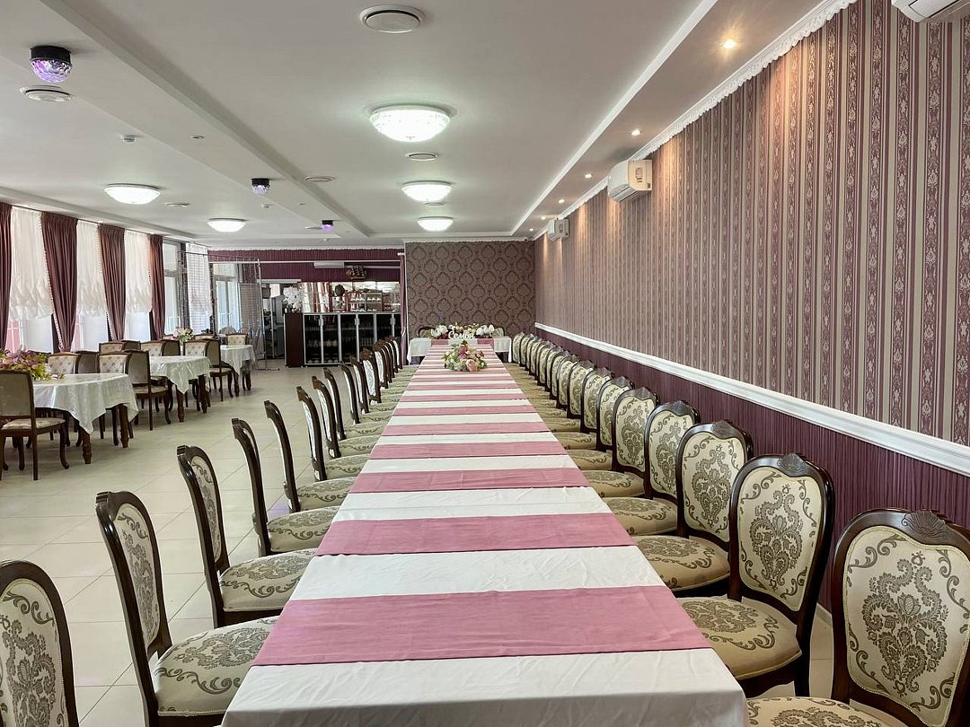 Двухэтажное здание комплекса включает пять комфортабельных номеров, банкетный зал, отдельный VIP-зал, уютное кафе, охраняемую стоянку и парковую зону для прогулок на свежем воздухе. Просторные номера оформлены в элегантном восточном стиле и полностью подготовлены к заселению.