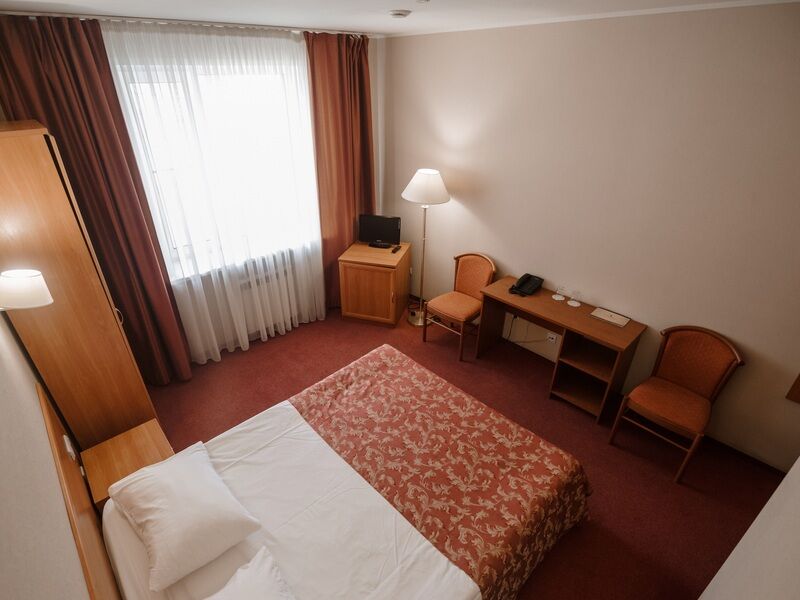 Четырехэтажное здание без лифта находится на главной улице города — улице Ленина. В отеле 49 номеров, рассчитанных на единовременное заселение 140 человек. Номера категории Стандарт, Студия, Семейный, Люкс оснащены необходимой мебелью и бытовой техникой — телевизором, феном, холодильником. В каждом есть ванная комната с душевой кабиной.