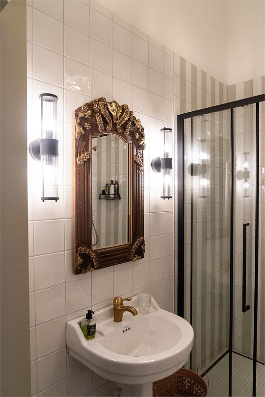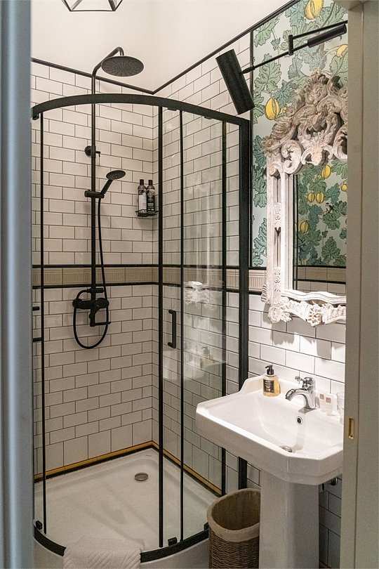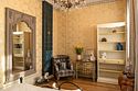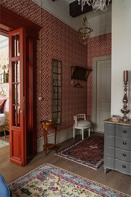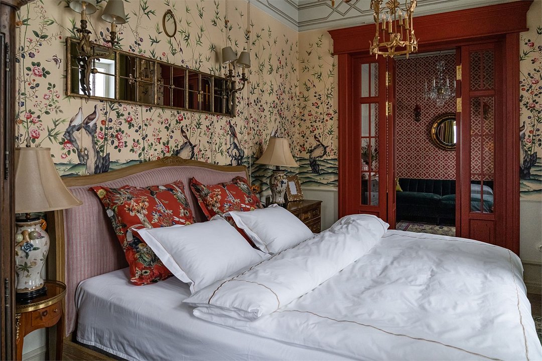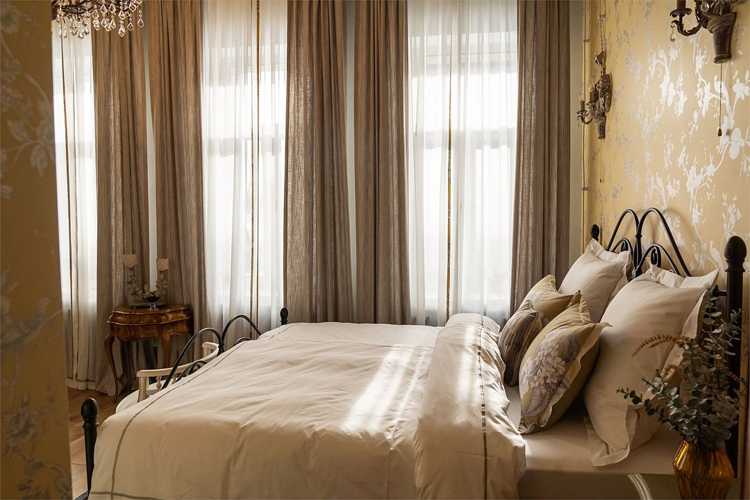 Wi-Fi, кондиционер, фен, ванна или душевая кабина, халаты, пляжные полотенца, тапочки, гигиенические средства, двуспальная кровать, шкаф для одежды, гардеробная, зеркало, пуфики, эксклюзивная мебель, мебельный гарнитур, раковина, косметическое зеркало, ковровое покрытие, общая ванная комната, высокие потолки, стаканы, пуфик, антикварная мебель, бутилированная вода, мылоВ номере