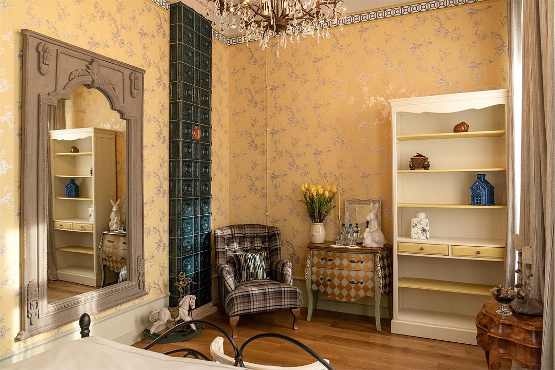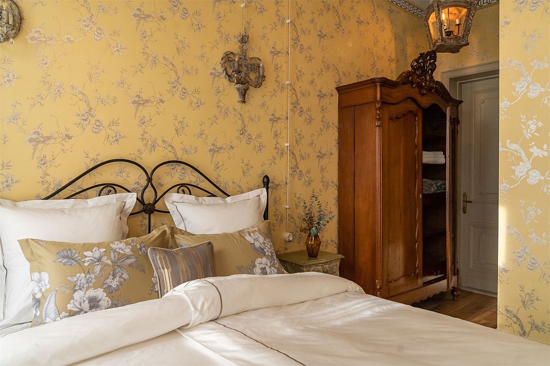 Wi-Fi, кондиционер, светильник, настольные лампы, фен, утюг, ванна или душевая кабина, халаты, пляжные полотенца, двуспальная кровать, кресла, шкаф для одежды, эксклюзивная мебель, мебельный гарнитур, раковина, ковровое покрытие, душ, вид во двор, стаканы, туалетные средства, антикварная мебель, туалетные принадлежности премиум-класса, бутилированная вода, частный двор, мыло, затемняющая штора, зеркало в полный ростВ номере