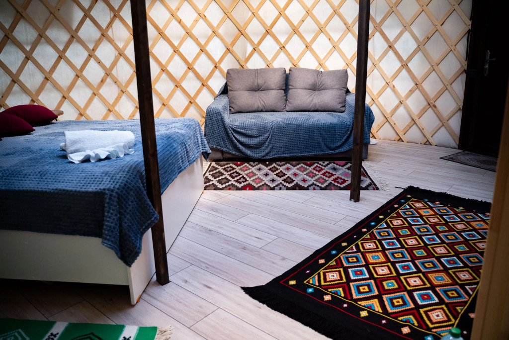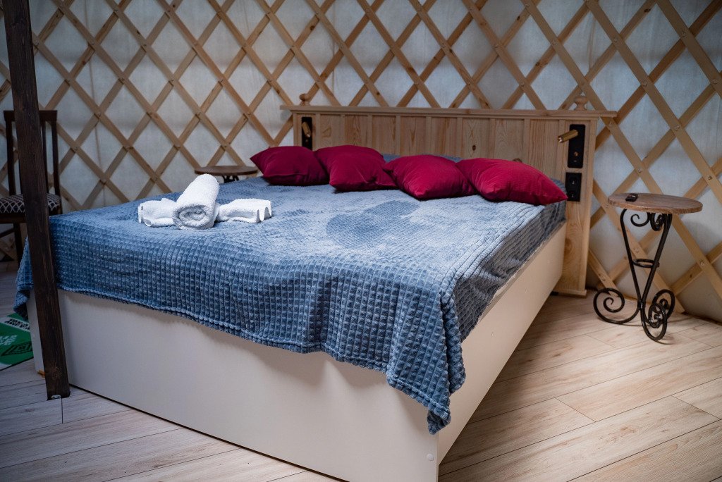 В основном здании расположено 13 номеров, доступны также три отдельно стоящие всесезонные юрты. Юрты оборудованы двухспальной кроватью, раздвижным диваном, мини-кухней, смарт-ТВ, душевой кабиной, раковиной и унитазом. Стойка регистрации и номера находятся на втором этаже здания. В одном номере можно разместить от одного до четырёх человек. Номера делятся на категории: стандарт и люкс.