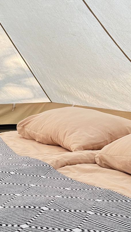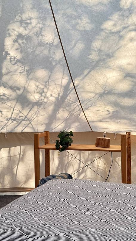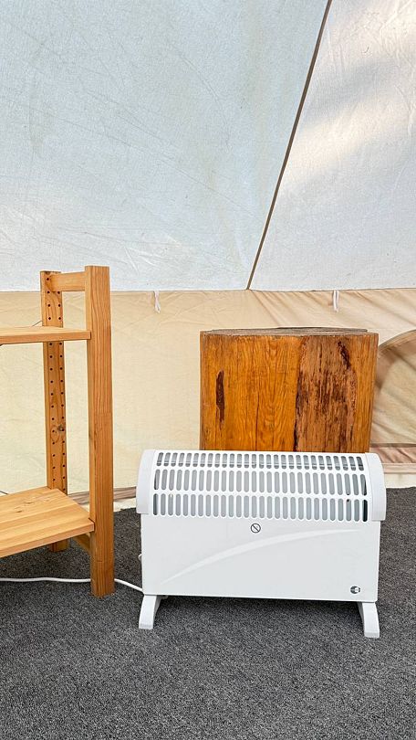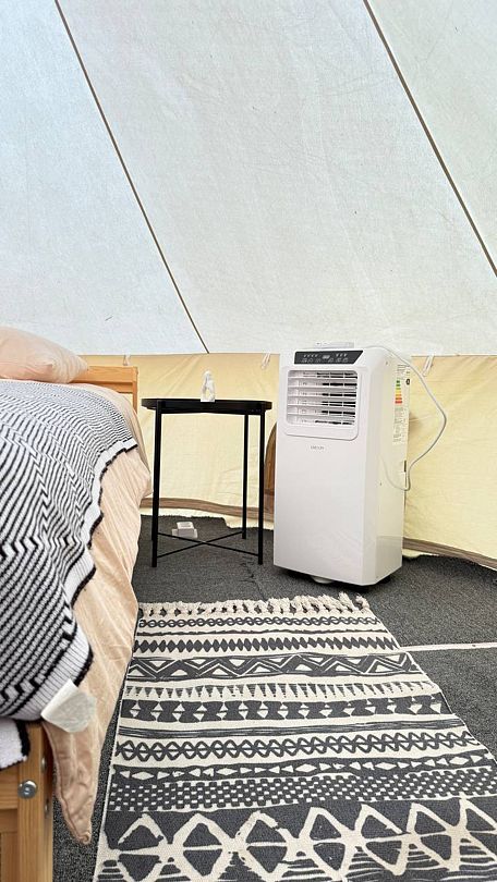Просторная стандартная палатка с двуспальной кроватью, кондиционером, обогревателем и всем необходимым.