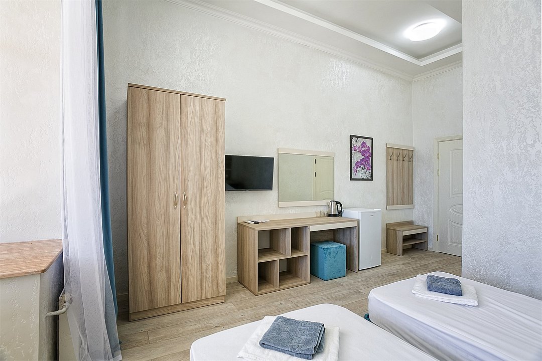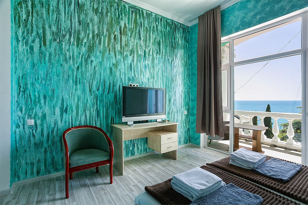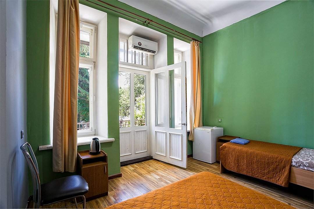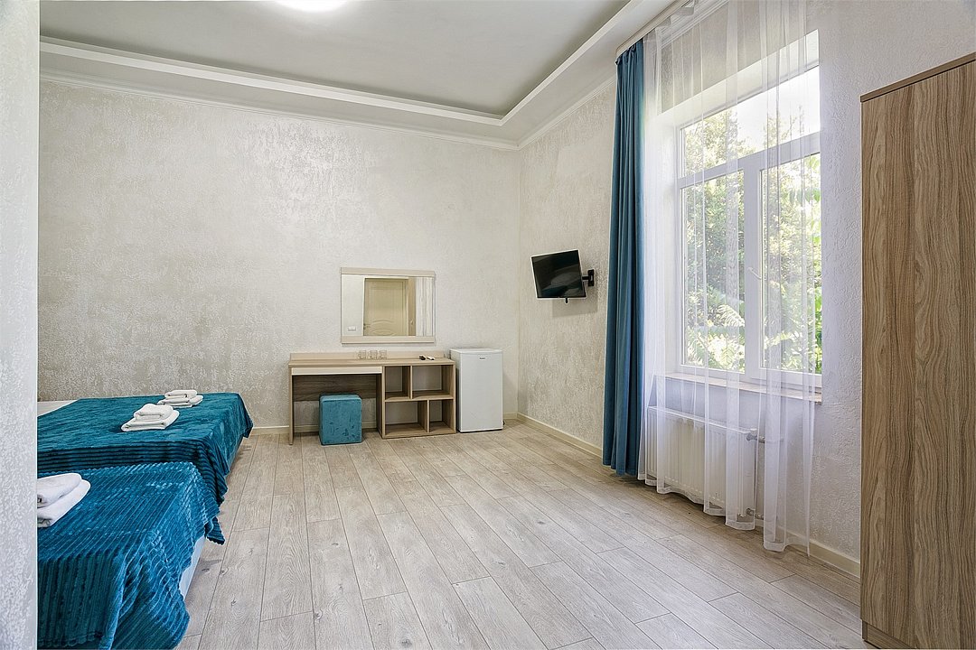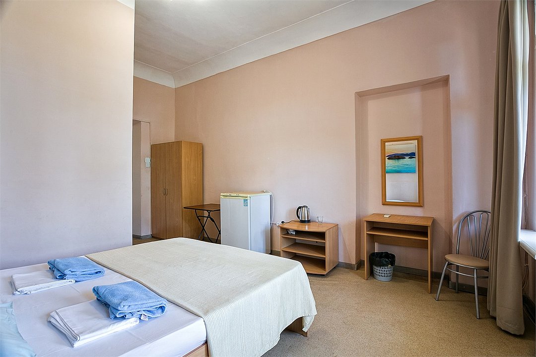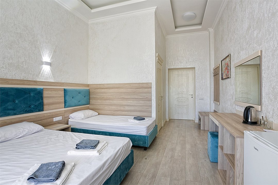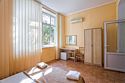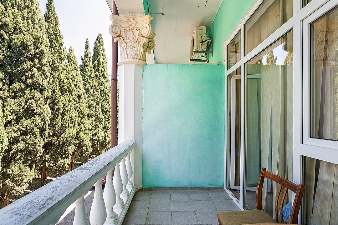 Однокомнатный уютный номер с одной двуспальной кроватью и одной односпальной кроватью, расположенный в корпусе "Ампир", с балконом и видом на море. Санузел с душевой кабиной. Возможно размещение одного или двух детей до 4-х лет без предоставления дополнительного места.Услуги и удобства