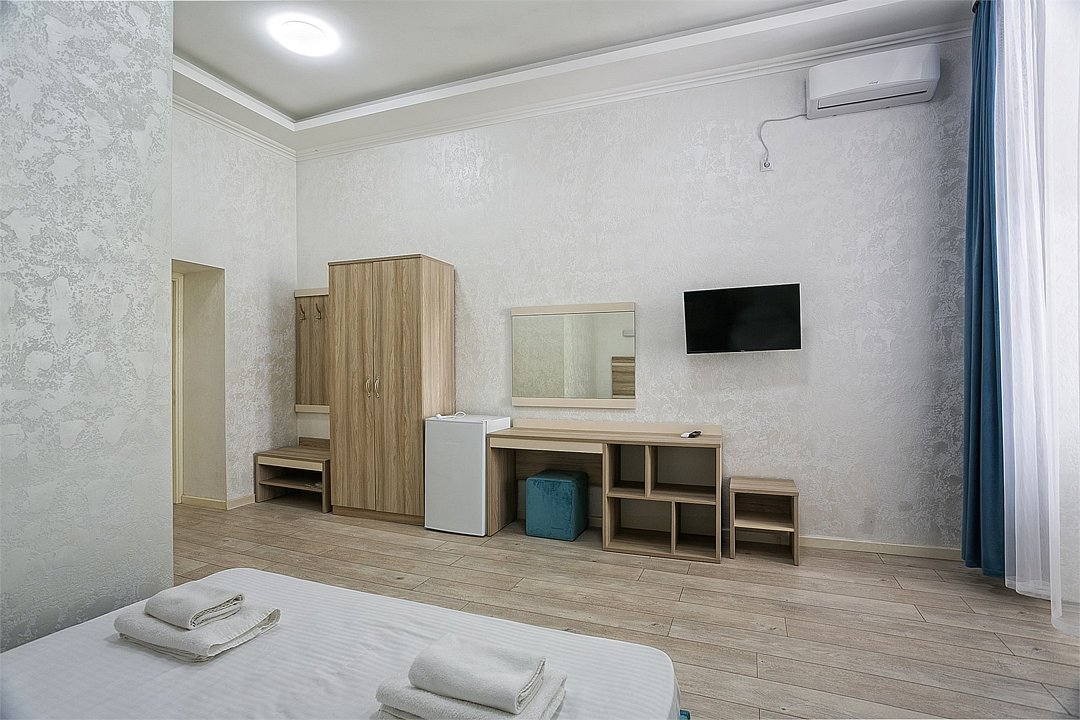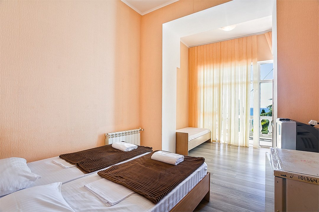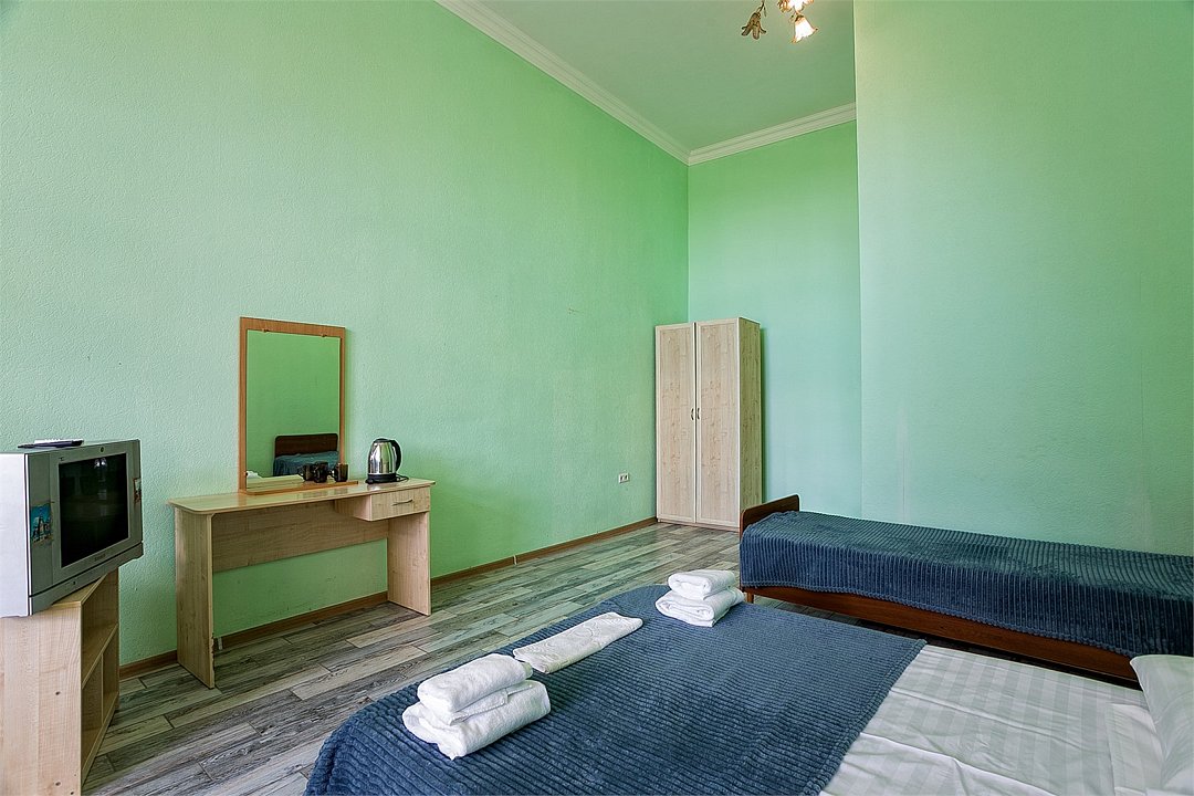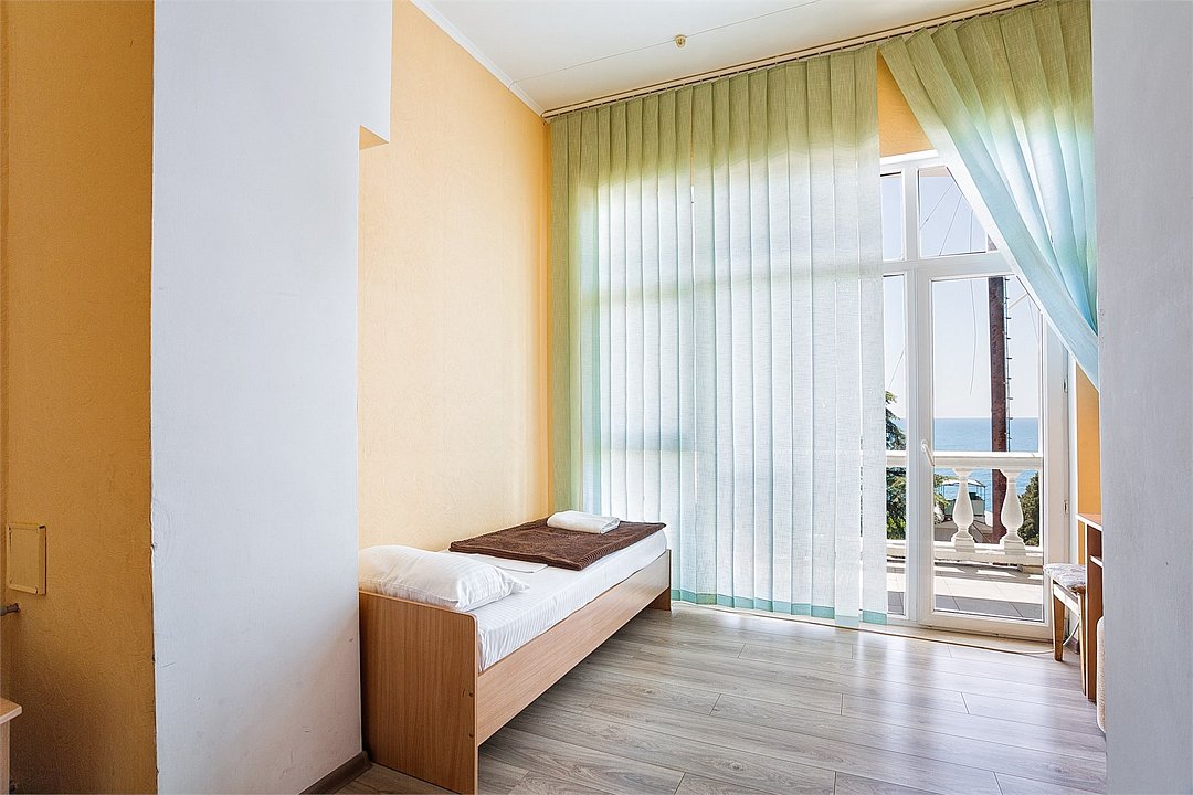 Однокомнатный уютный номер, расположенный в корпусе "Дельфин" на втором этаже с балконом, с видом на море. Санузел - душевая. Основные места - 2 односпальные кровати, дополнительное место - 1 односпальная кровать.Услуги и удобства