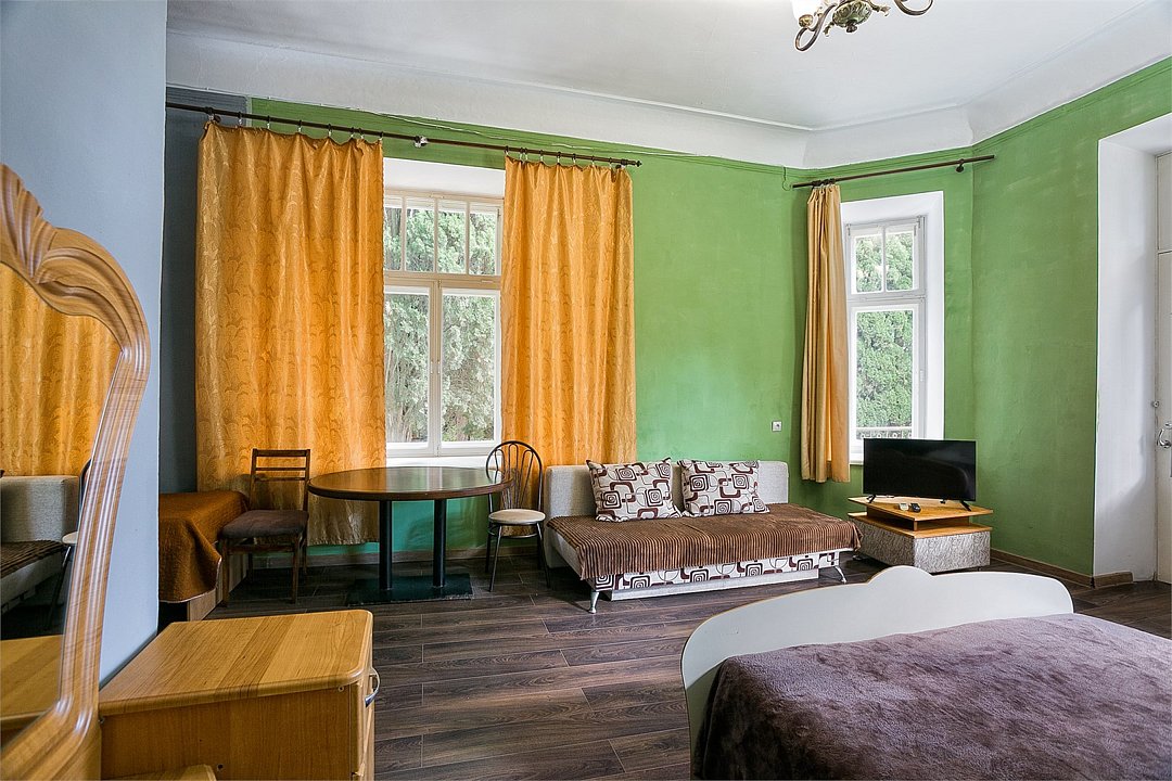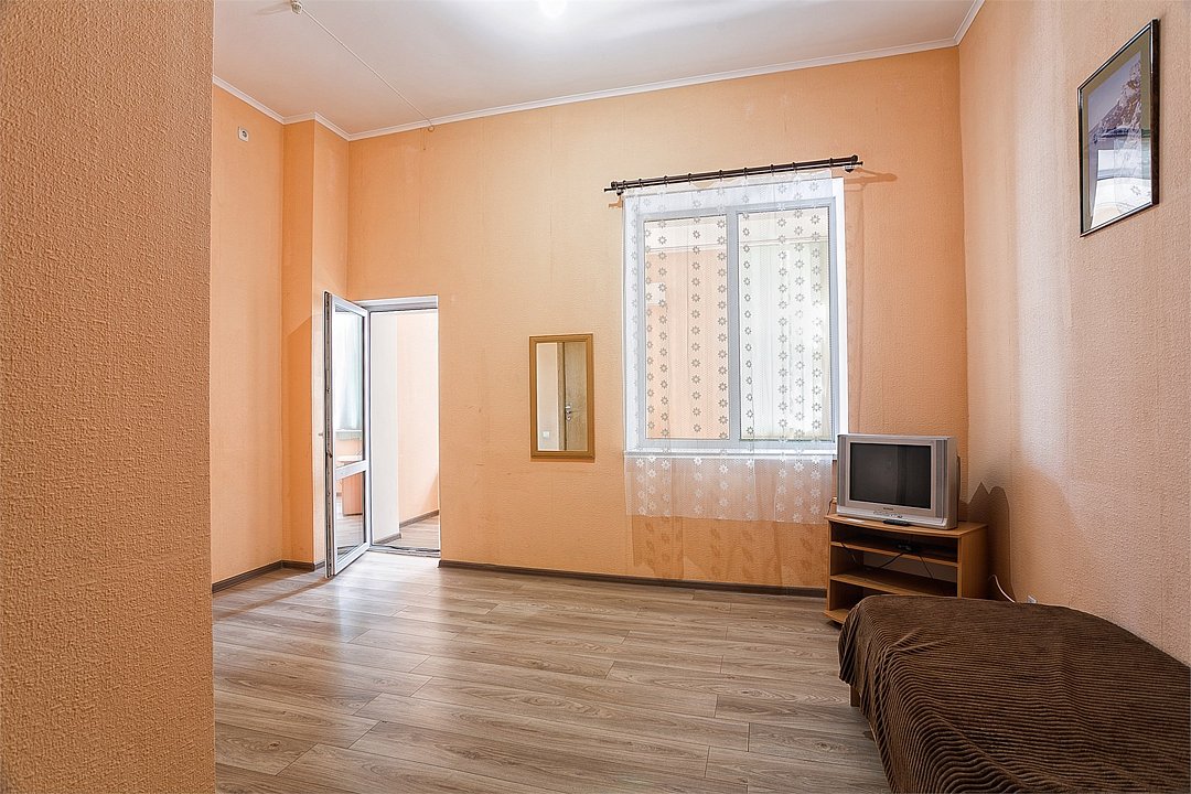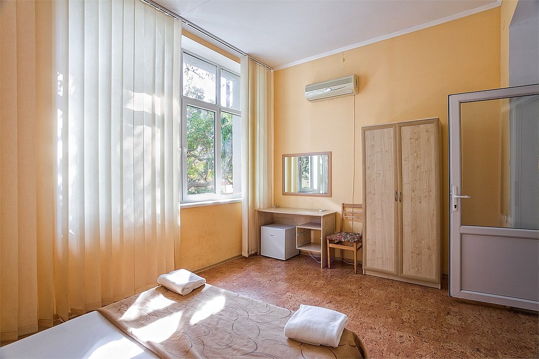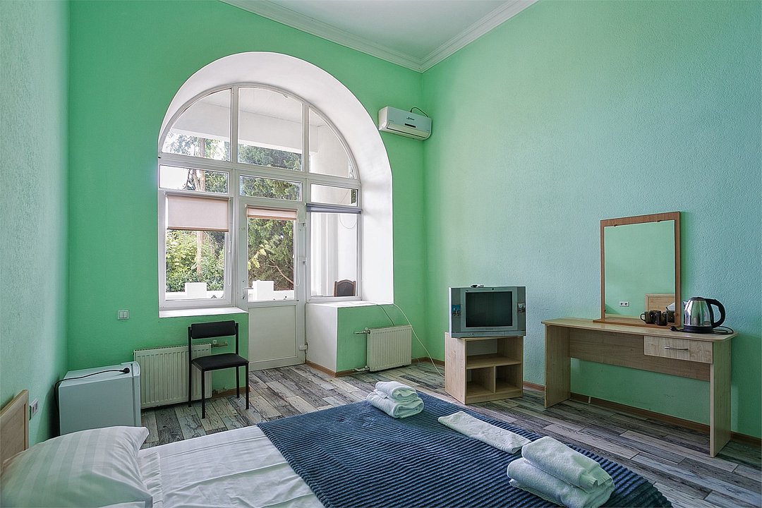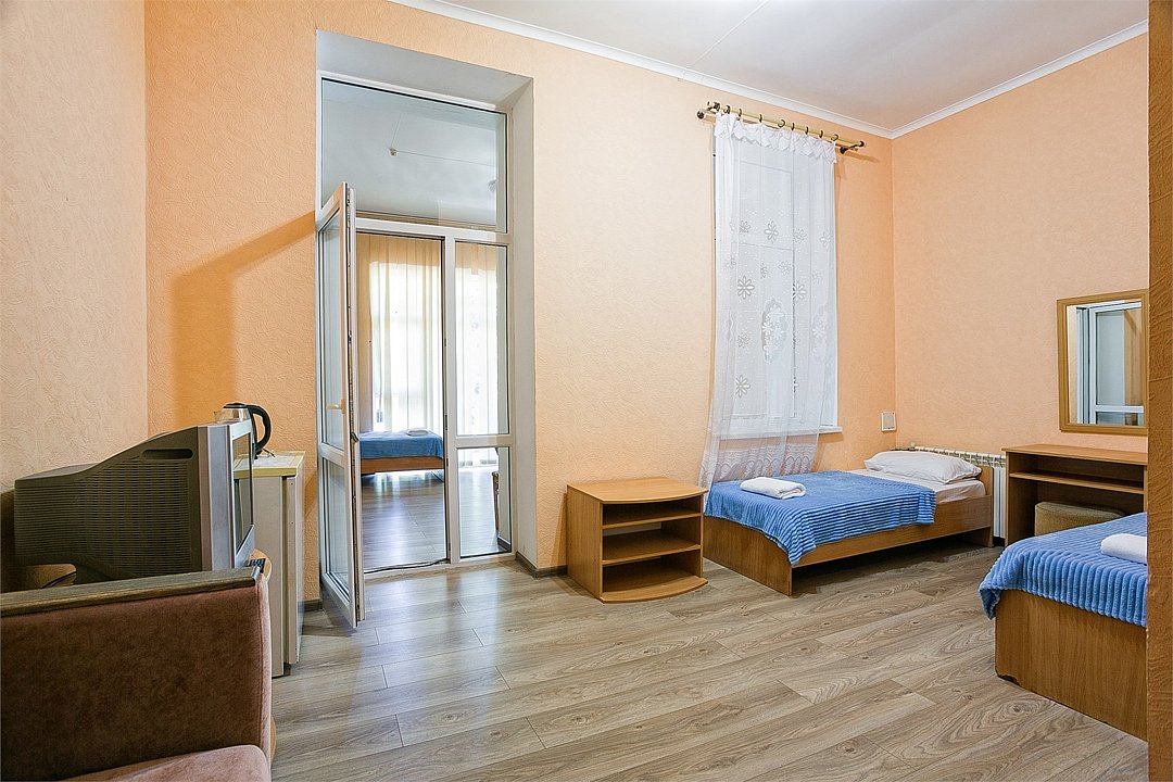 Однокомнатный уютный номер, расположенный на втором этаже корпуса "Дельфин" с большим балконом, с видом на парк и горы. Санузел - душевая. Основные места - 2 односпальные кровати, дополнительное место - 1 односпальная кровать или 1 еврораскладушка.Услуги и удобства