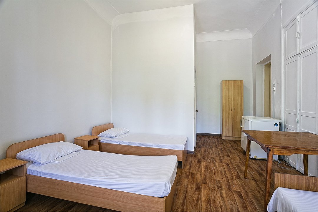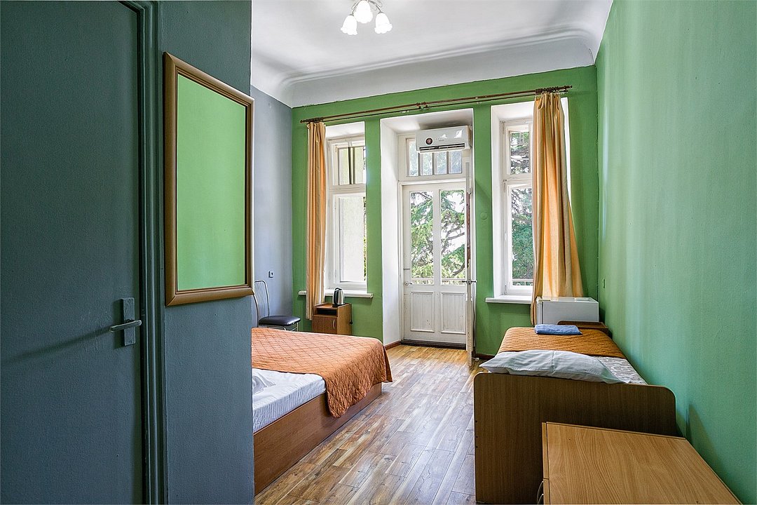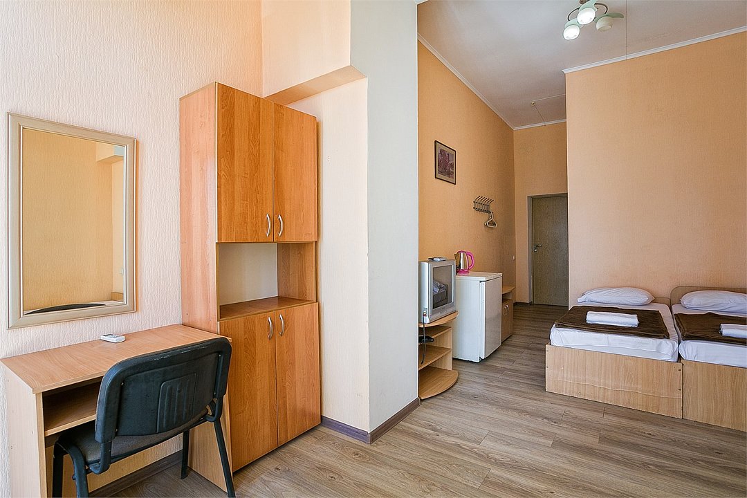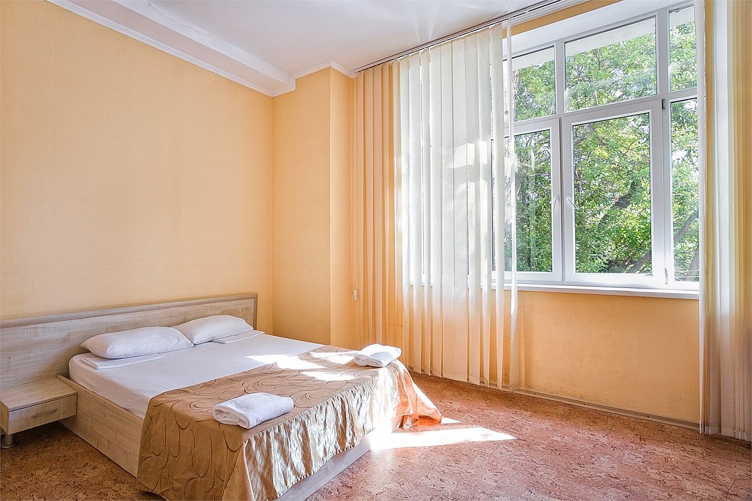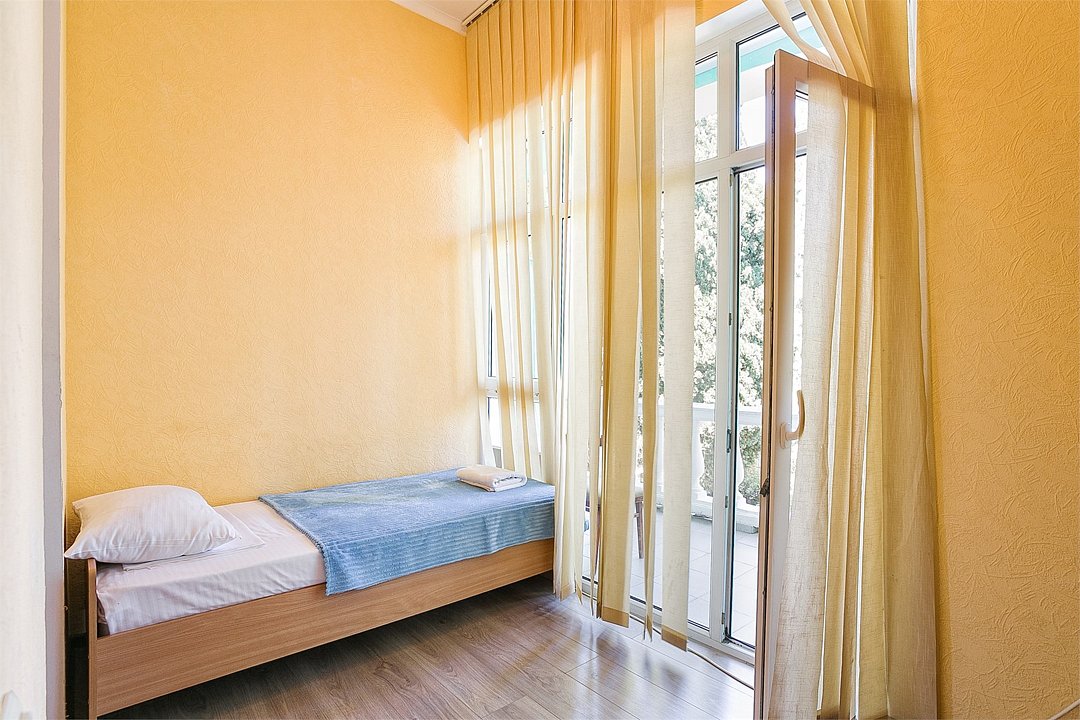 Однокомнатный уютный номер, расположенный на втором этаже корпуса "Дельфин" с большим балконом, с видом на парк и горы. Санузел - душевая. Основные места - 2 односпальные кровати, дополнительное место - 1 односпальная кровать или 1 еврораскладушка.Услуги и удобства