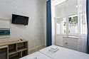 Однокомнатный компактный номер, расположенный на минус первом этаже корпуса "Дельфин" с балконом, с видом на внутреннюю территорию и море. Санузел - душевая. Основные места - 2 односпальные кровати, дополнительное место - 1 односпальная кровать.Услуги и удобства