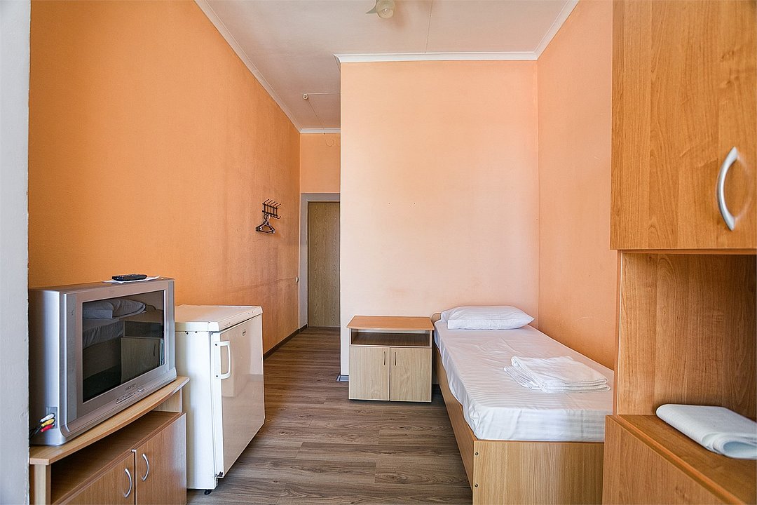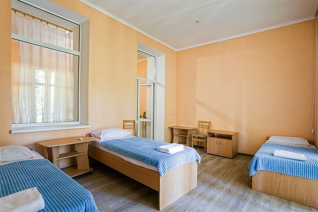 Однокомнатный компактный номер, расположенный на первом этаже корпуса "Дельфин" с балконом, с видом на море. Санузел - душевая. Основные места - 2 односпальные кровати, дополнительное место - 1 односпальная кровать, либо 1 еврораскладушка.Услуги и удобства