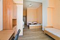 Двухкомнатный просторный номер, расположенный либо на минус первом этаже, либо на втором этаже, без балкона, с видом на внутреннюю территорию отеля. Санузел - душевая. Основные места - 1 двуспальная кровать, либо 2 односпальные кровати, дополнительное место - 1 односпальная кровать и 1 еврораскладушка, либо 3 односпальные кровати.Услуги и удобства