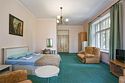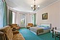 Однокомнатный уютный и просторный номер с одной двуспальной кроватью и одной односпальной кроватью, расположенный в корпусе "Ампир", с балконом, с видом на парк и внутренний двор отеля. Санузел с душевой кабиной. Возможно размещение одного ребёнка до 4-х лет без предоставления дополнительного места.Услуги и удобства