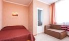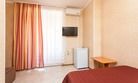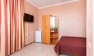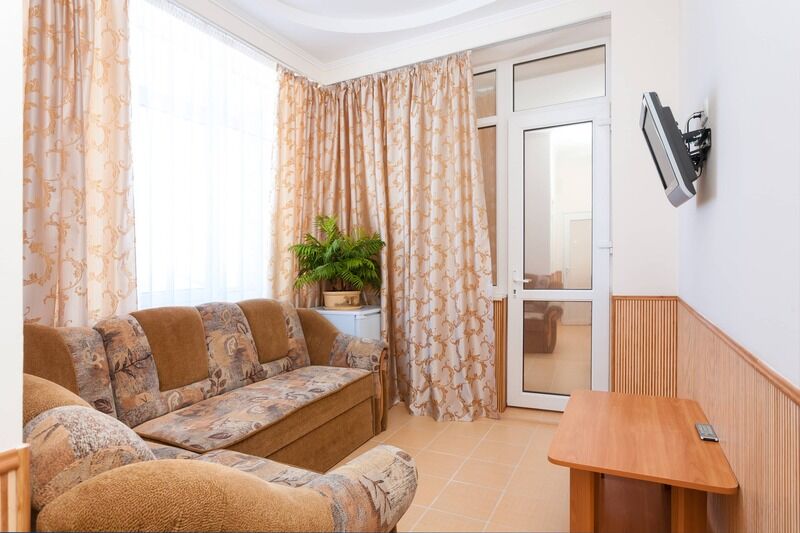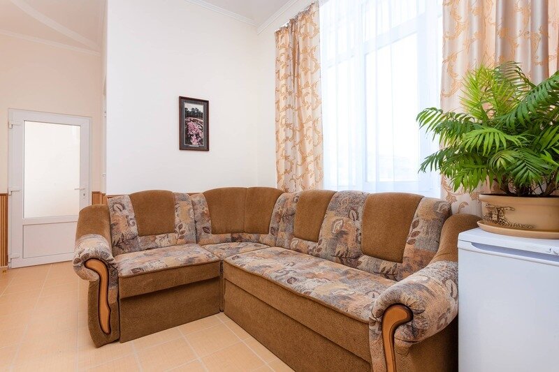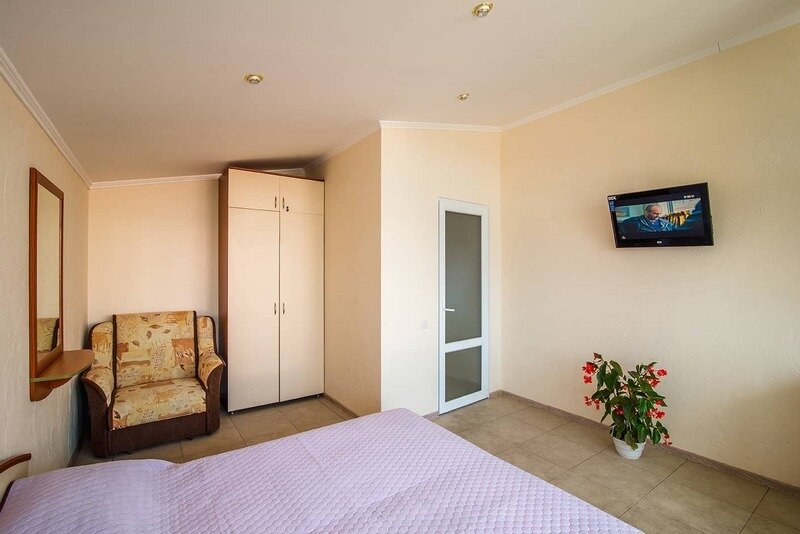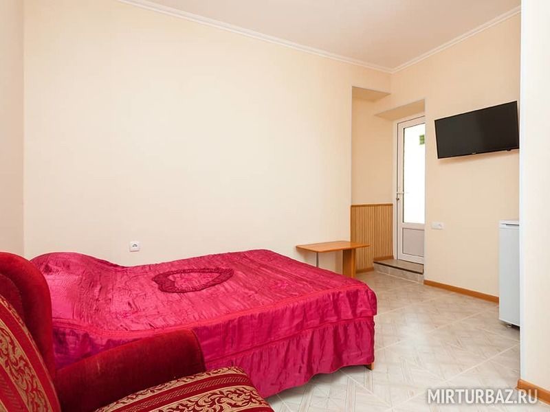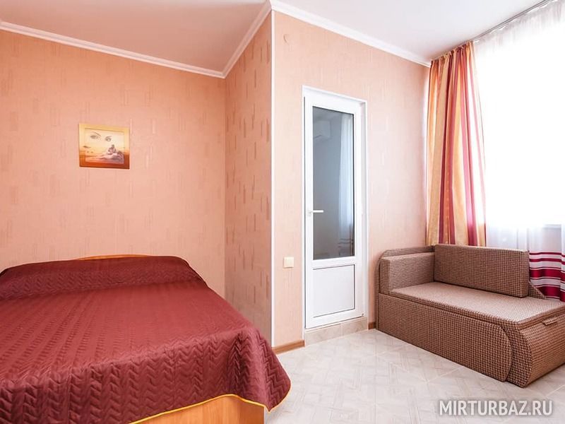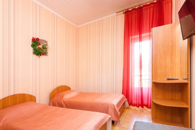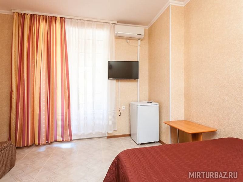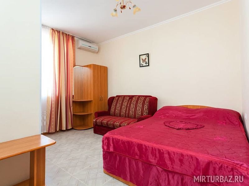 Для размещения гостей установлены большие односпальные и двуспальные кровати. На них могут комфортно разместиться 4 человека. Квадратура номера «улучшенный стандарт» позволяет постояльцам не мешать друг другу во время отдыха, а большое количество шкафчиков, полочек и ящиков – каждому найти место для своего багажа.В номере предусмотрен отдельный санузел с новой сантехникой и удобной душевой кабиной. В зависимости от выбранного номера, окна будут выходить во внутренний двор гостиницы или же в сторону моря. Во дворе для гостей второго корпуса расположены удобные столики, стулья и мягкие топчаны для отдыха. Также все могут пользоваться общей кухней, в которой найдется все необходимое для комфортной трапезы. Также на территории предусмотрена стоянка для автомобилей, террасы с потрясающими видами, кафетерий и пр.
