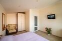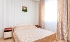 В данной категории номеров в наличии три спальных места – это одна двуспальная и одна односпальная кровати или три односпальных. Личные вещи постояльцев свободно разместятся в тумбе или в большом платяном шкафу.