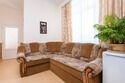 В гостиной можно провести время, удобно расположившись на угловом диване. При желании можно превратить его в еще одно спальное место, что очень удобно для отдыха семей с детьми. Здесь же находится холодильник, размер которого позволяет запастись продуктами на время всего уик-энда.