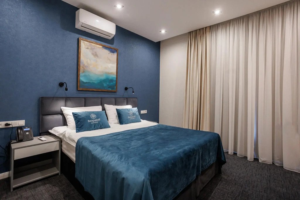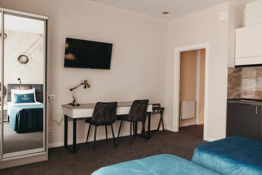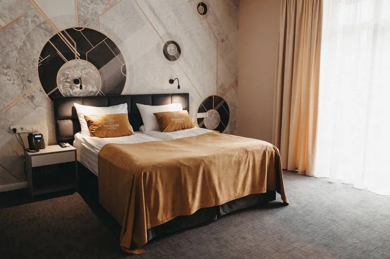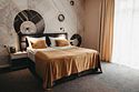 Номер уютно обставлен и оснащён необходимым, чтобы отдохнуть после долгого и насыщенного дня. Имеются телевизор и халат. Оснащение зависит от выбранной категории номера.