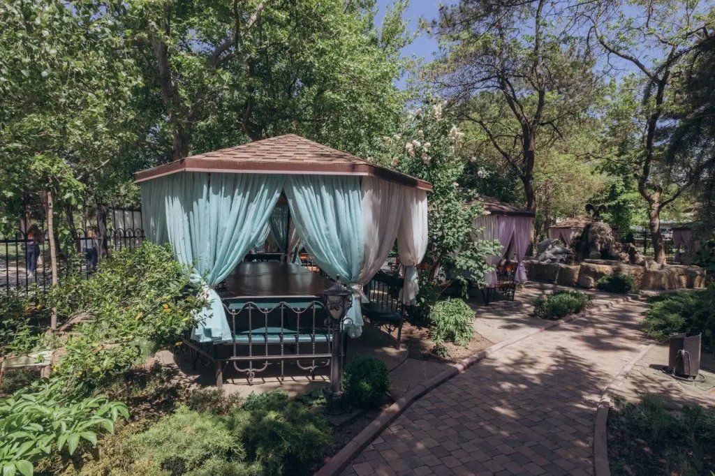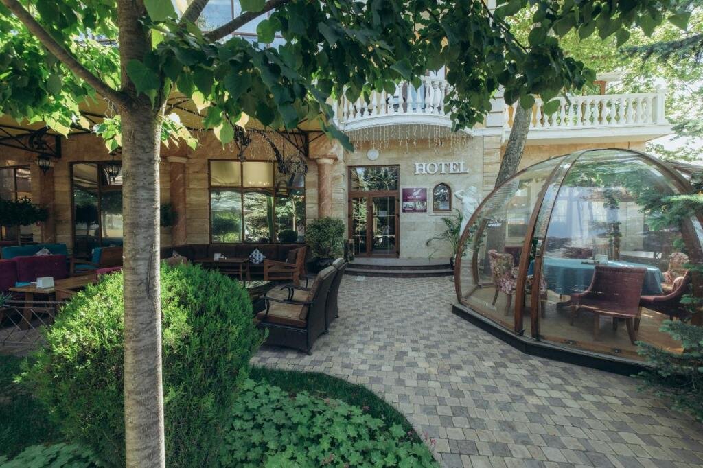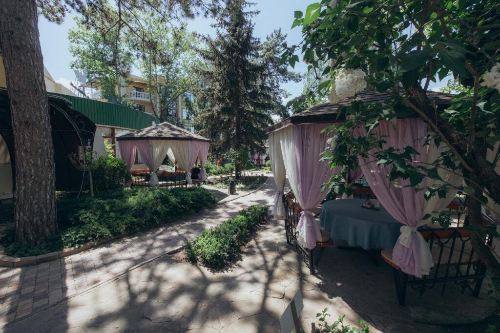 Отель Даяна находится в пешей доступности от центра Симферополя, рядом с центральным входом в Гагаринский парк, на территории ресторана «Чистые пруды».