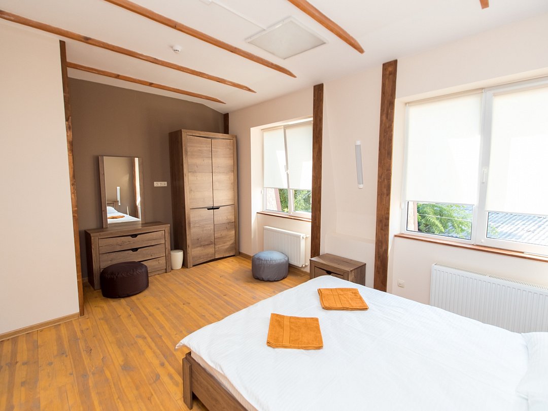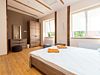 Лучший вариант для тех, кто хочет получить максимальный комфорт, а также для любителей побыть наедине с любимым. В просторном уютном, с оригинальной отделкой, номере расположена поистине королевская двуспальная кровать с ортопедическим матрасом. Все отделочные материалы произведены только из натуральных ЭКО компонентов. Кондиционер, персональные прикроватные тумбочки, мебельный гарнитур, паркет, TV, WiFi иполную тишину, и покой - всё это вы получите, остановившись в этом чудесном номере! Санузел в номере с качественной сантехникой, душевой кабиной не оставит вас равнодушными.В номере