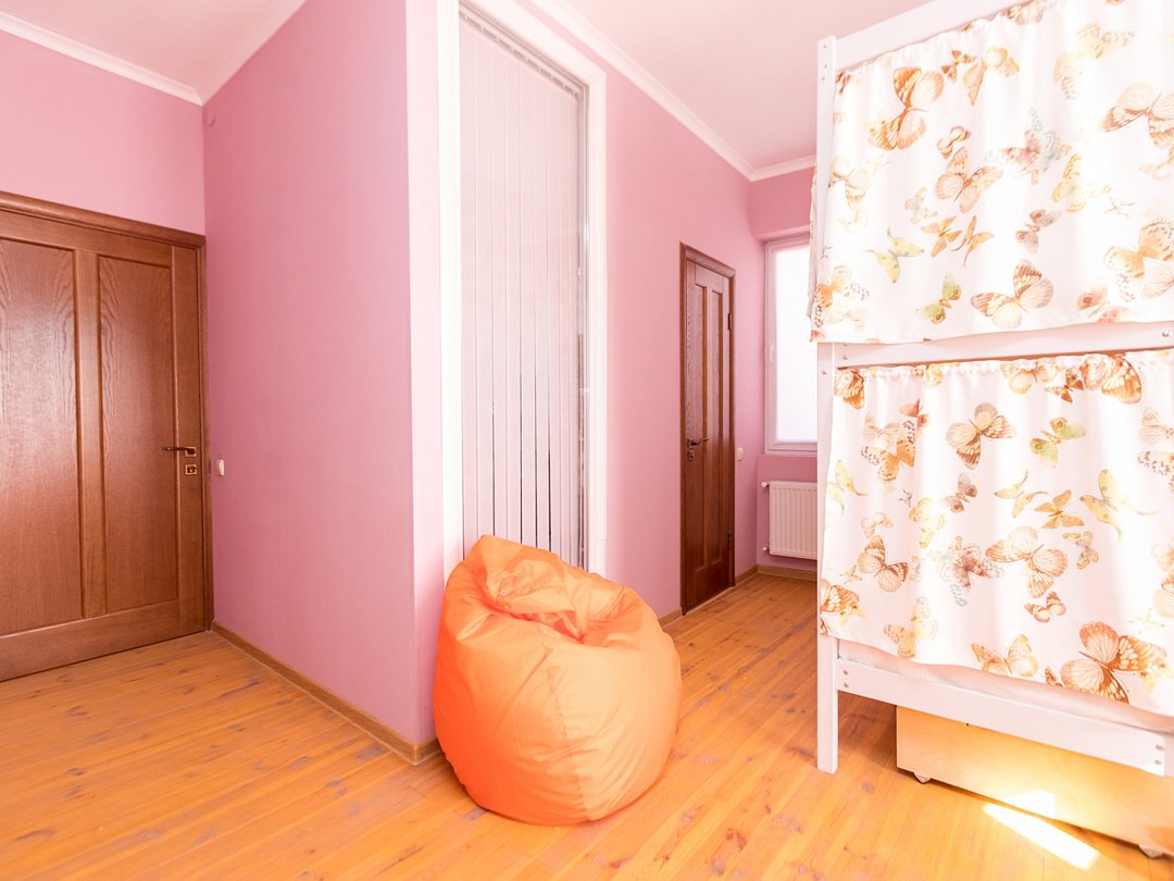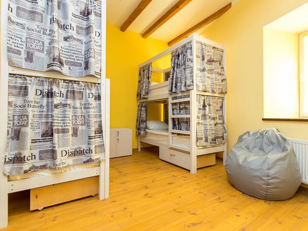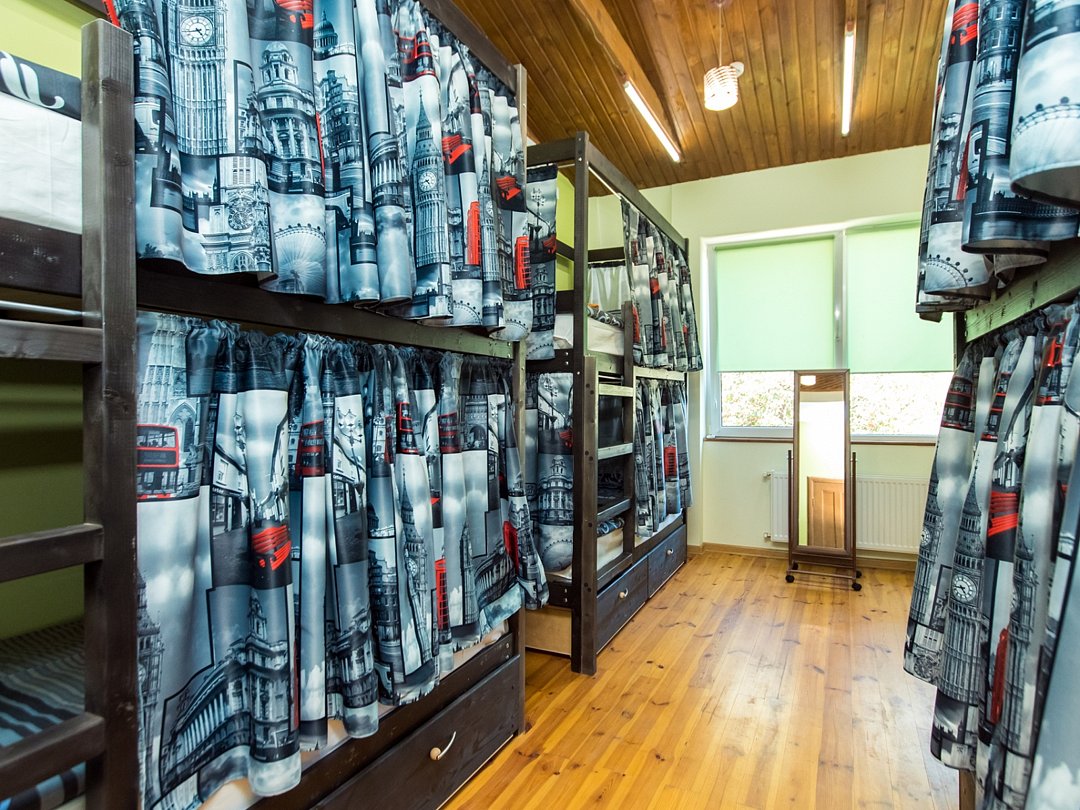 Общий номер с собственным санузлом “Весенняя зелень”. Номер расположен на втором этаже двухэтажного здания гостиницы “Фортуна” и отличается более темными тонами кроватей, но весенними нотами в цвете стен. Вся отделка номера из натуральных материалов, общая площадь 30 кв метров. Для гостей номера предусмотрены шкафчики под ключ, вешалка для вещей, зеркало во весь рост и двухъярусные кровати ” Биг – Бен” из натурального дерева, шторки для индивидуального пространства гостей, светильники, WiFi, смарт ТВ. Совмещенный сан узел с душевой кабиной, находится в номереВ номере