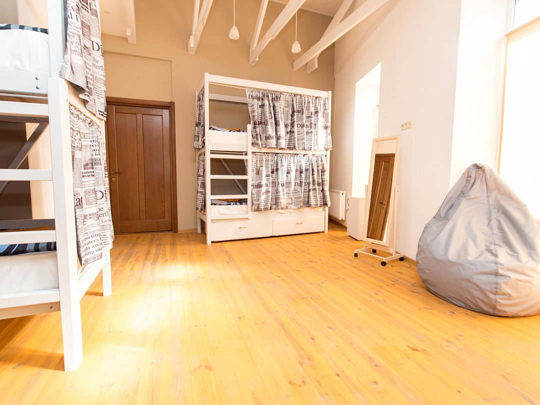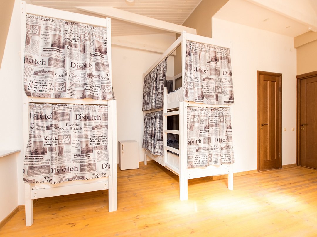 Общий номер с собственным санузлом “Белый капучино “. Номер расположен на втором этаже двухэтажного здания гостиницы “Фортуна” и является визитной карточкой хостела. Отличается мягкими бежевыми оттенками в отделки стен, с наличием балкона, кондиционера в номере. Оригинальная отделка номера из натуральных материалов. Общая площадь номера 35 кв. метров. Для гостей номера предусмотрены шкафчики под ключ, вешалка для вещей, зеркало во весь рост и двухъярусные кровати из натурального дерева, шторки для индивидуального пространства гостей, светильники. WiFi, смарт ТВ. Совмещенный сан узел с душевой кабиной, находится в номереВ номере