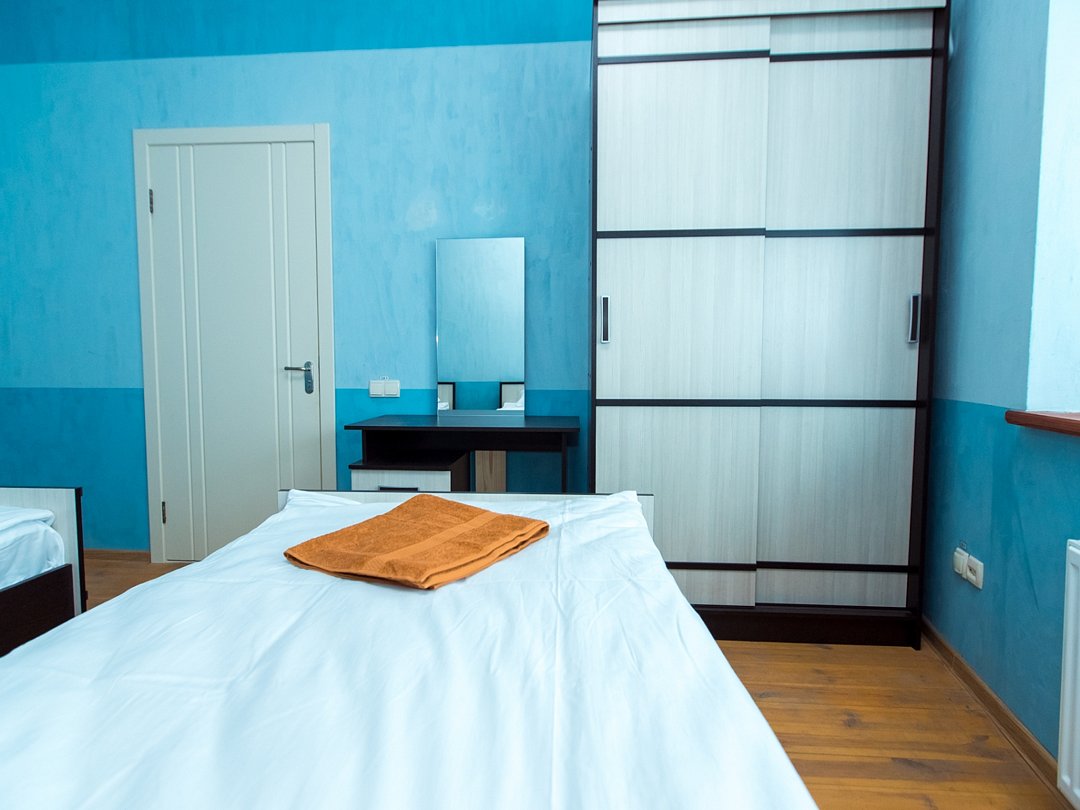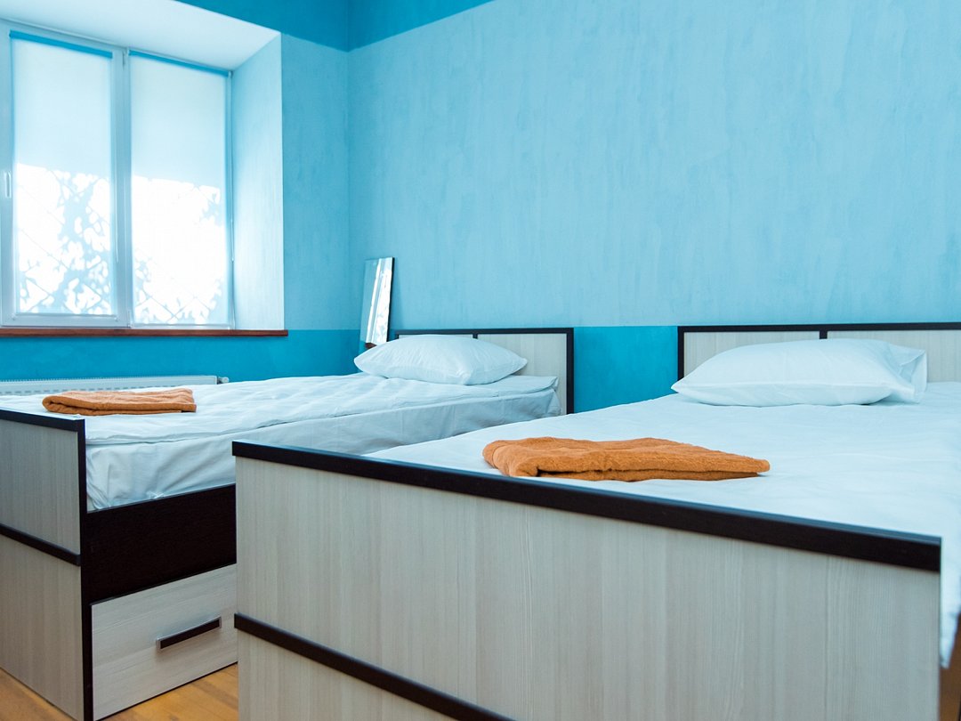 Лучший вариант для тех, кто хочет получить максимальный комфорт за умеренные деньги, В уютной комнате с тонами морского бриза в цветовой гамме, паркетом расположены две кровати с комфортными матрасом, шкаф купе, косметический столик с зеркалом, смарт ТВ, высокоскоростной интернет. Персональные прикроватные тумбы, полную тишину и покой – всё это получите вы, остановившись в этом номере! Санузел находиться в общей зоне гостиницы.В номере