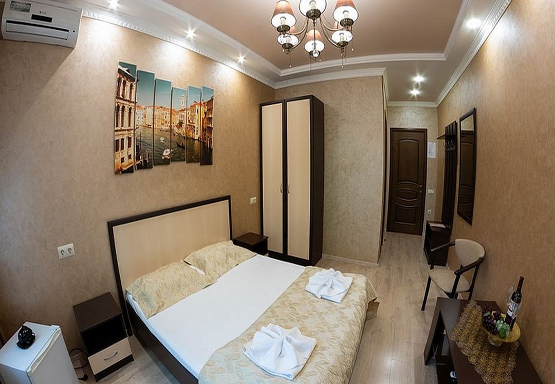 Двуспальная кровать,шкаф, прикроватные тумбочки, пуфик, кондиционер, зеркало, журнальный столик, набор полотенец, набор постельного белья, щетка для одежды/обуви, телевизор, холодильник. В ванной: туалет, раковина, душевая кабина, средства личной гигиены, фен, зеркало, набор полотенец.Услуги и удобства
