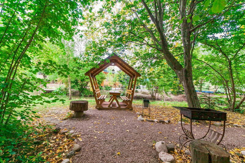 На территории имеется целый комплекс уютных вместительных беседок для разного количества человек, которые позволят провести любые мероприятия. Работает русская баня на дровах. Имеется рыболовный инвентарь.